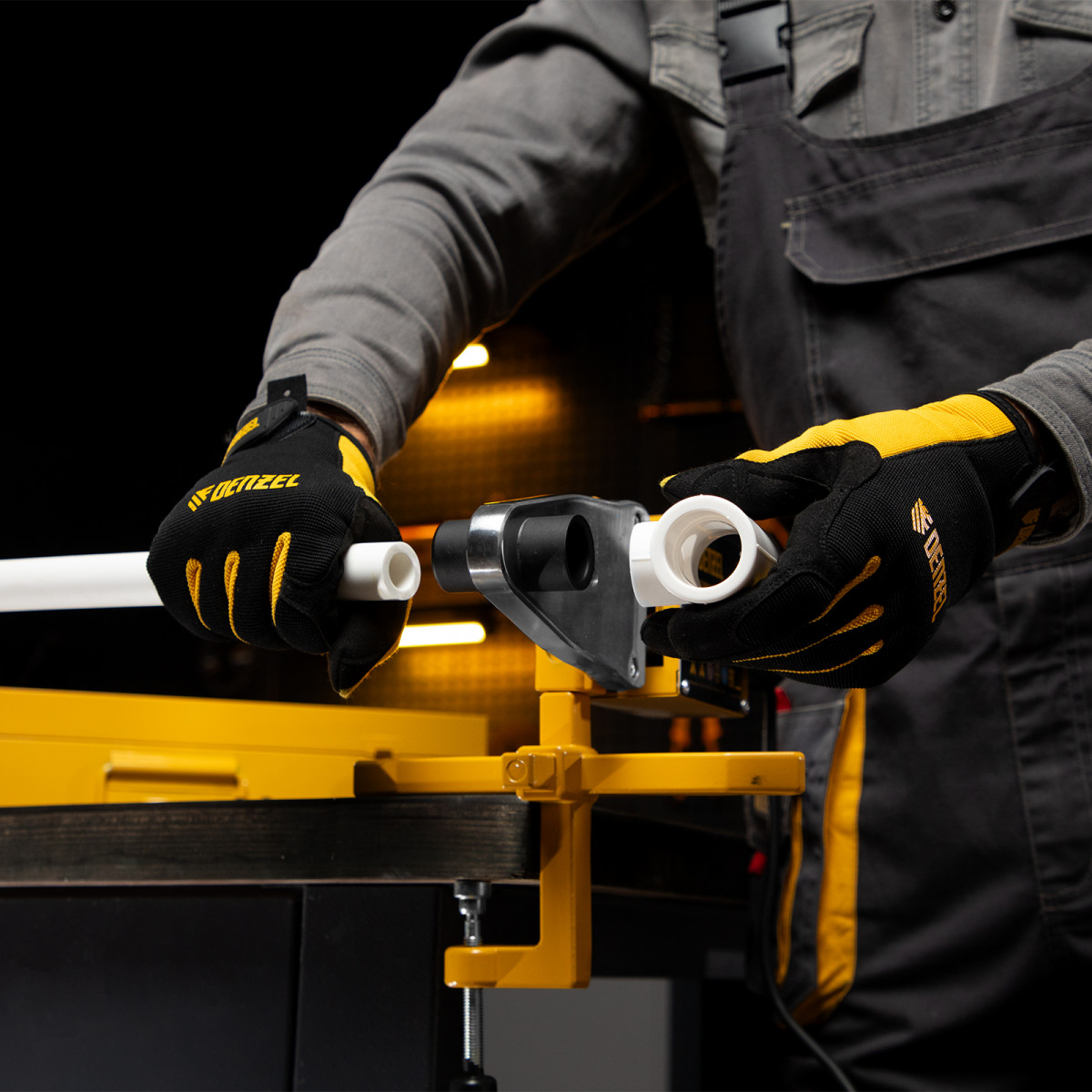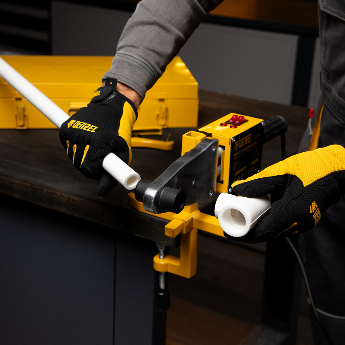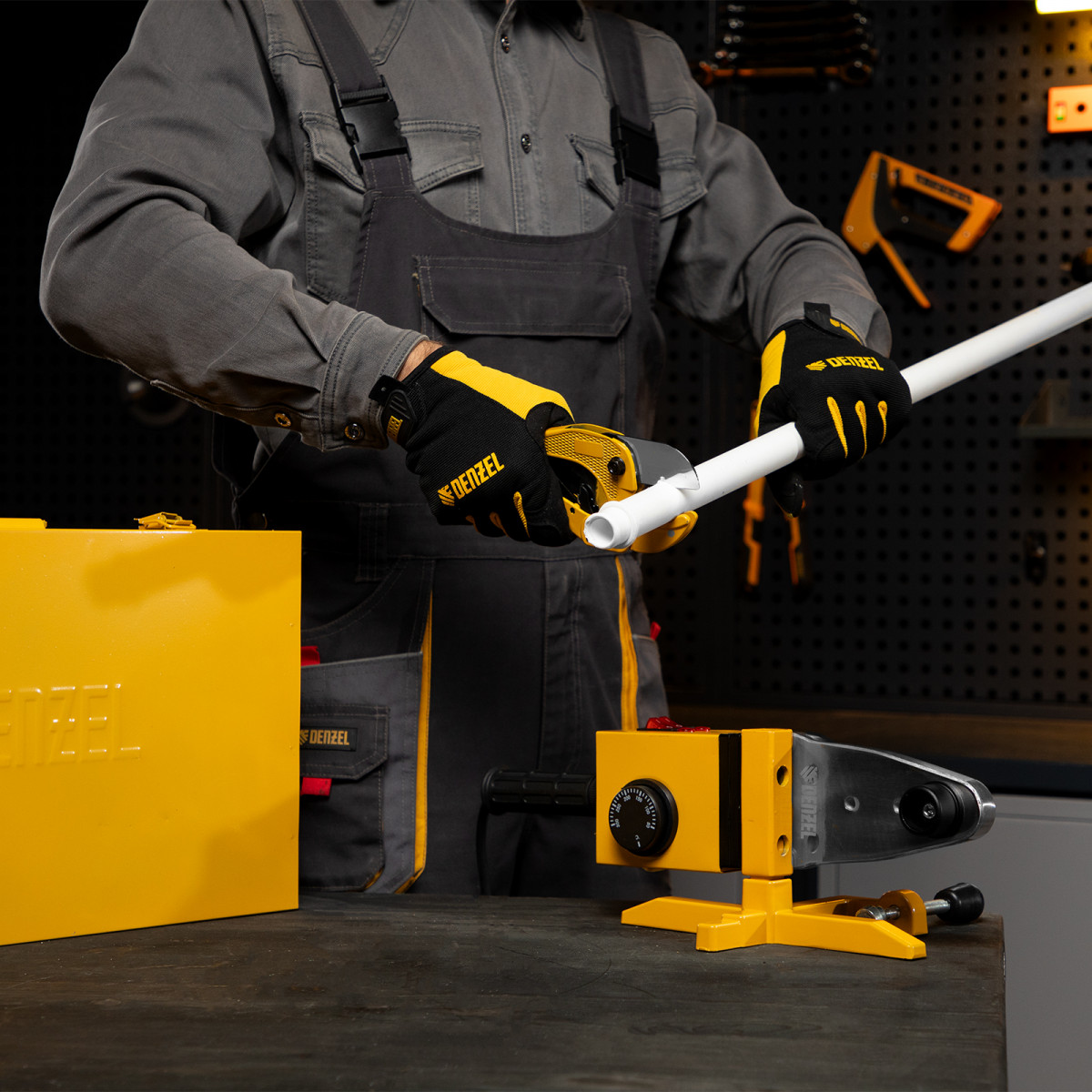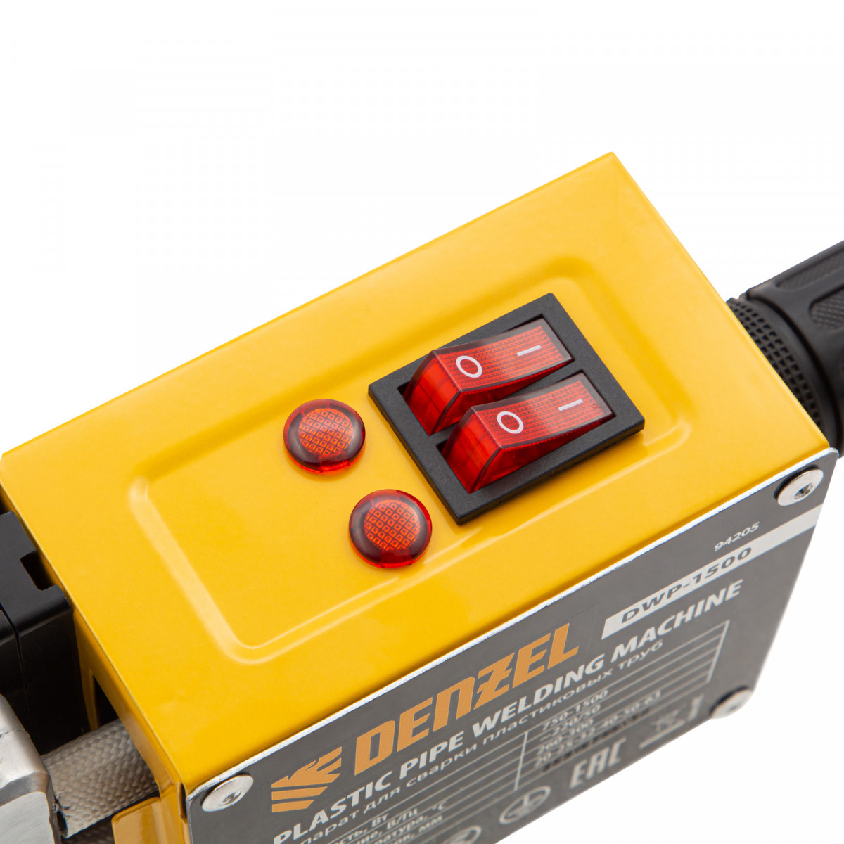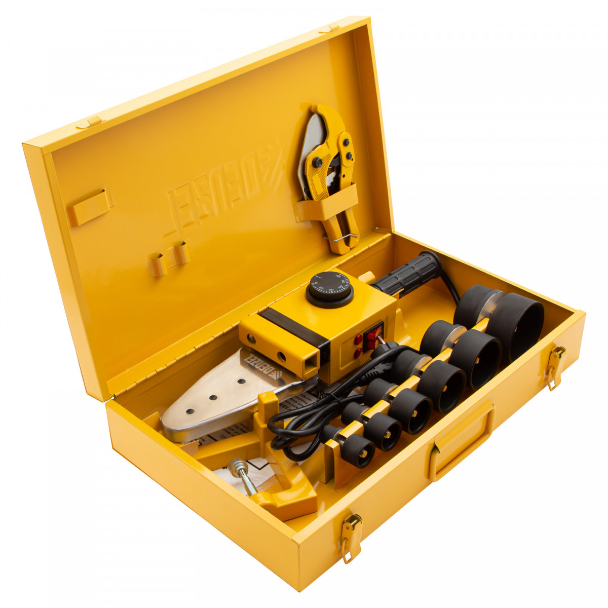 Аппарат для сварки пластиковых труб DWP-1500, 1500 Вт, 260-300 град, комплект насадок, 20-63 мм Denzel