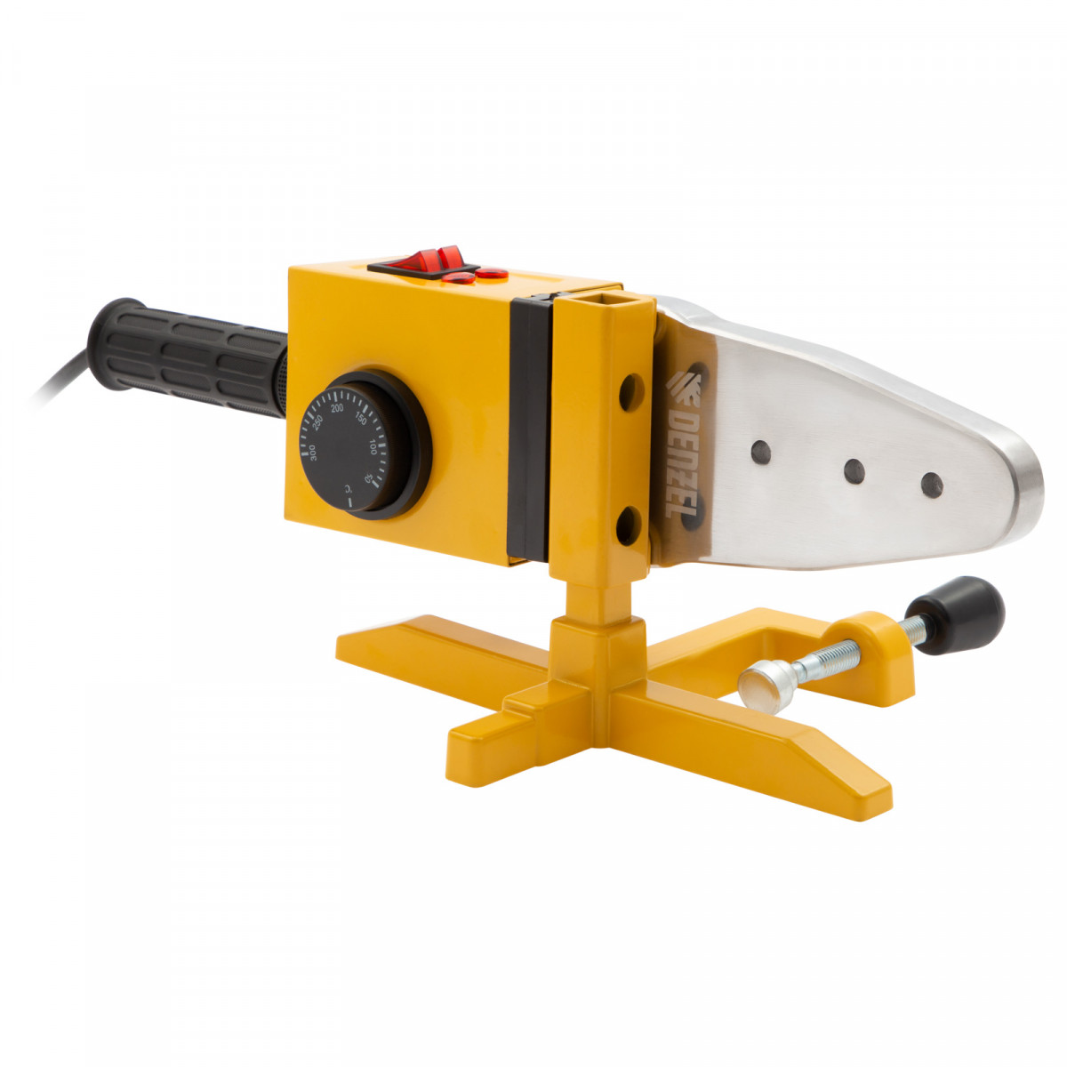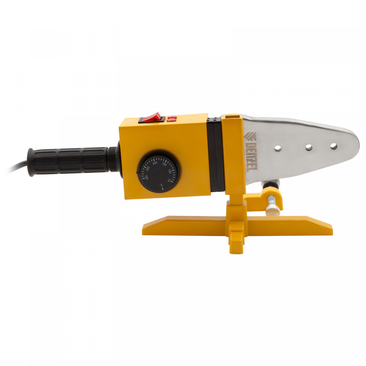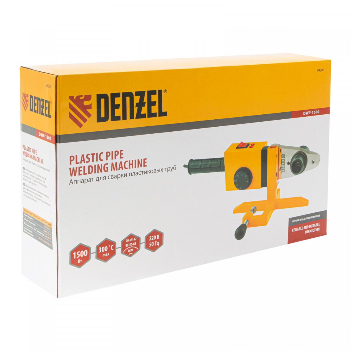 Аппарат для сварки пластиковых труб Denzel DWP-1500 94205 мощностью 1500 Вт предназначен для соединения полипропиленовых и полиэтиленовых труб диаметром 20, 25, 32, 40, 50 и 63 мм при нагреве до 260-300 °C. Незаменим во время ремонта и прокладки систем горячего и холодного водоснабжения, отопления, при проведении сантехнических работ с канализационными трубами и т.д. Питается от однофазной бытовой сети 220 В и имеет простой принцип работы, поэтому оптимален для использования в квартире и частном доме.