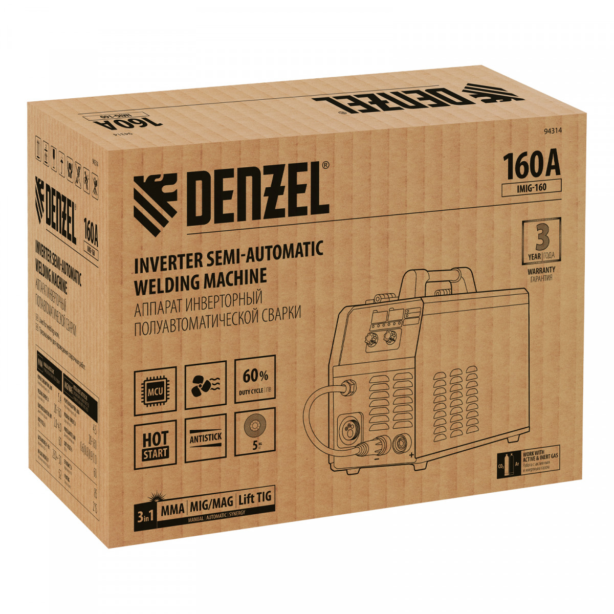 Аппарат инвертор. полуавтомат. cварки IMIG-160 Synergy, 160 А, ПВ 60%, катушка 5 кг Denzel
