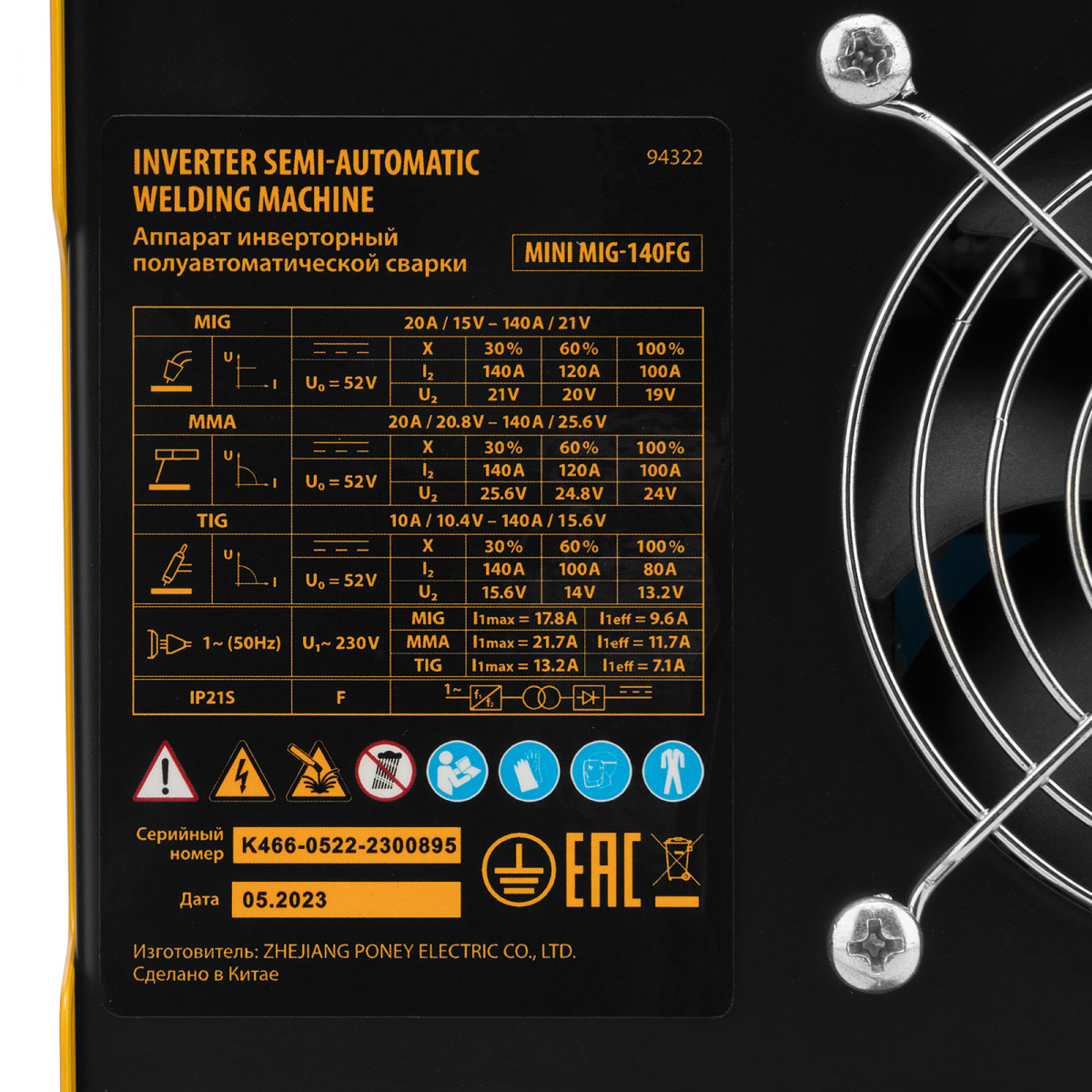- Дополнительные функции в режиме MMA — Hot start (быстрый поджиг дуги), ArcForce (поддержание горения дуги) и Antistick (антизалипание, позволяет легко отделить электрод от заготовки, не повредив его и не перегрузив аппарат).