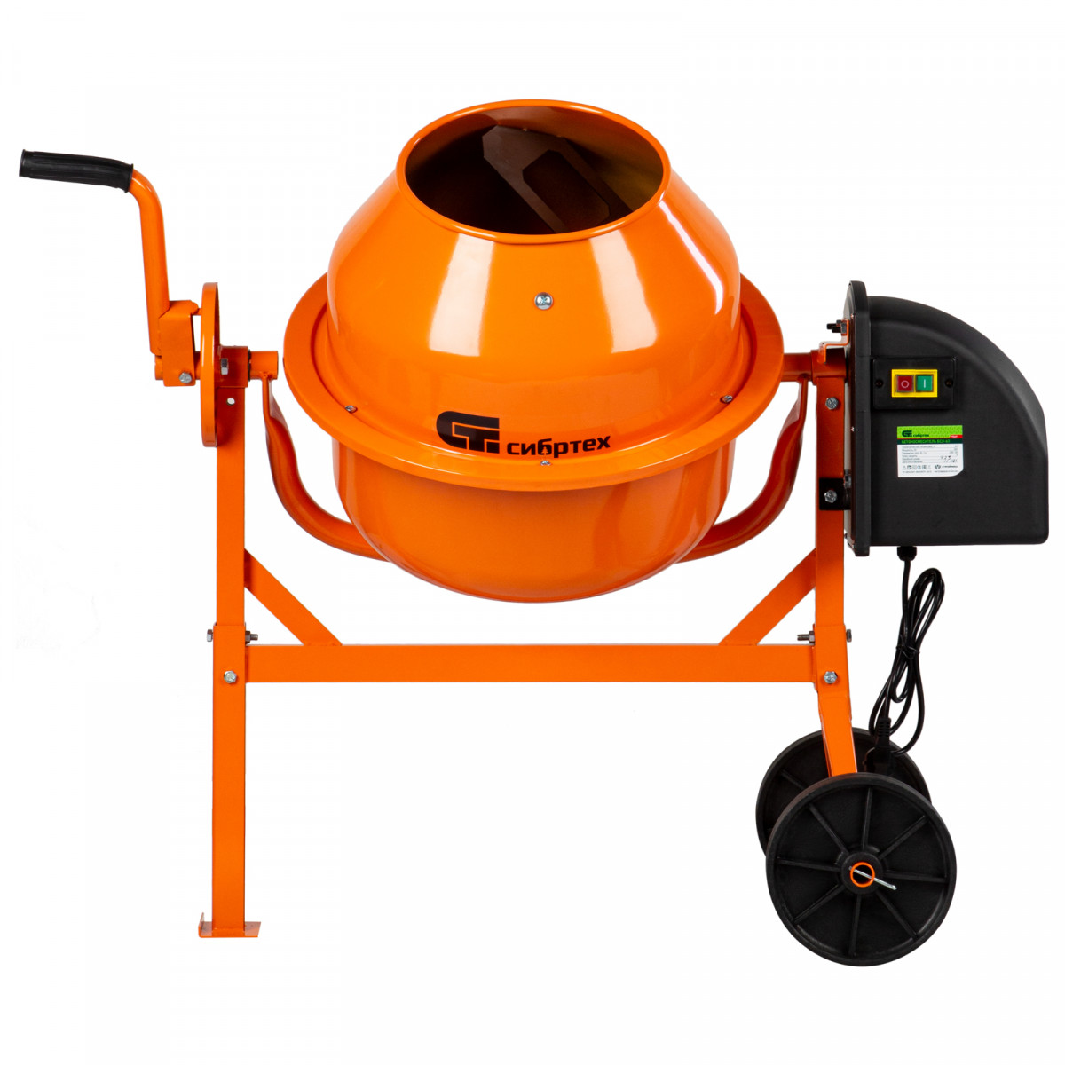 Бетоносмеситель Сибртех БСЛ-63 95469 объемом 63 литра и мощностью 300 Вт применяется при производстве штукатурки для отделки стен, подвижных бетонных растворов для работ с фундаментом и стяжки пола, клеевых смесей для укладки плитки. Малый размер барабана позволяет использовать устройство в небольших помещениях, без труда перемещая его в нужное место. При максимально допустимом заполнении на выходе получится до 40 л готовой смеси. Венец из прочной перфорированной стали выдерживает несколько рабочих циклов с небольшими перерывами, что позволяет ускорить процесс работы.