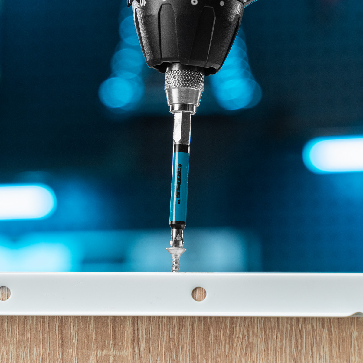 • Намагниченный шлиц облегчает работу — крепеж удерживается битой, поэтому свободной рукой можно придерживать закрепляемую поверхность.