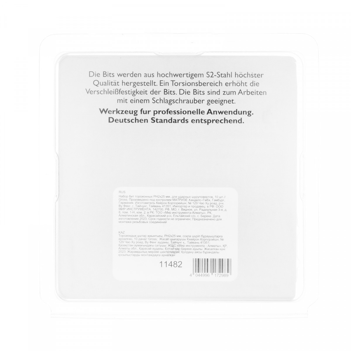 Набор торсионных бит PH2 x 25 мм Gross 11482, 10 шт., предназначен для монтажа и демонтажа резьбовых соединений с помощью ударного шуруповерта. Он незаменим в строительных, слесарных и монтажных работах, в автосервисах, при проведении ремонта в доме. Торсионная зона способна пружинить, за счет чего она частично амортизирует тангенциальный удар от шуруповерта. Такое решение позволяет равномерно распределить нагрузку по бите и избежать поломки шлица.