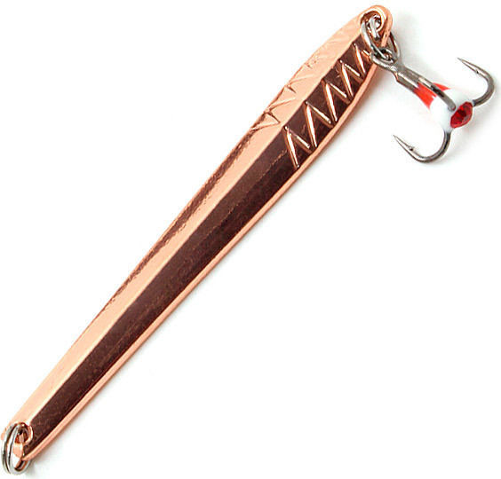 Namazu Lizard - это серия колебалок, которые предназначены для подледной ловли. Среди модификаций есть варианты для охоты окуневой и щучьей, а также судаковой. У блесны узкая вытянутая пластина, в лицевой части чуть изогнутая. Такая форма обуславливает соблазнительную выразительную игру: приманка красиво покачивается и отклоняется в сторону от вертикали на подбросах различной интенсивности. Блестящая поверхность пластины при попадании света заманчиво бликует. Спереди в нижней части есть фигурное рифление. Оснащаются данные блесны Namazu Lizard острозаточенным тройником, который дополнен разноцветным наплывом со стразом. Броская деталь сможет стать решающим фактором, что побудит заторможенного в холодной воде хищника на поклевку.