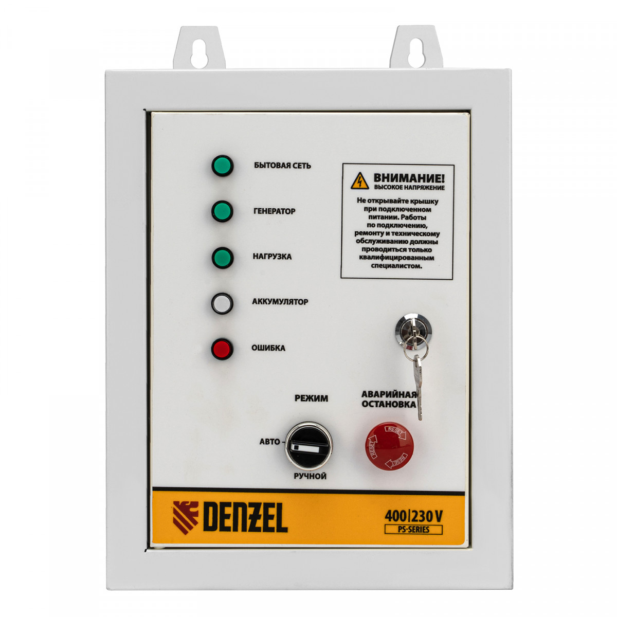 Блок автоматического запуска Denzel PS-120TS 946715 используется совместно с генератором PS-120EA или PS-120EAD-3. Позволяет создать систему автономного электроснабжения. Блок управления переключает питание на генератор при падении напряжения в стационарной сети, а при восстановлении электроснабжения останавливает генератор и переключает питание объекта обратно на сеть. Устройство рассчитано на нагрузку 14 кВА и будет полезно в загородном доме и на строительной площадке.
