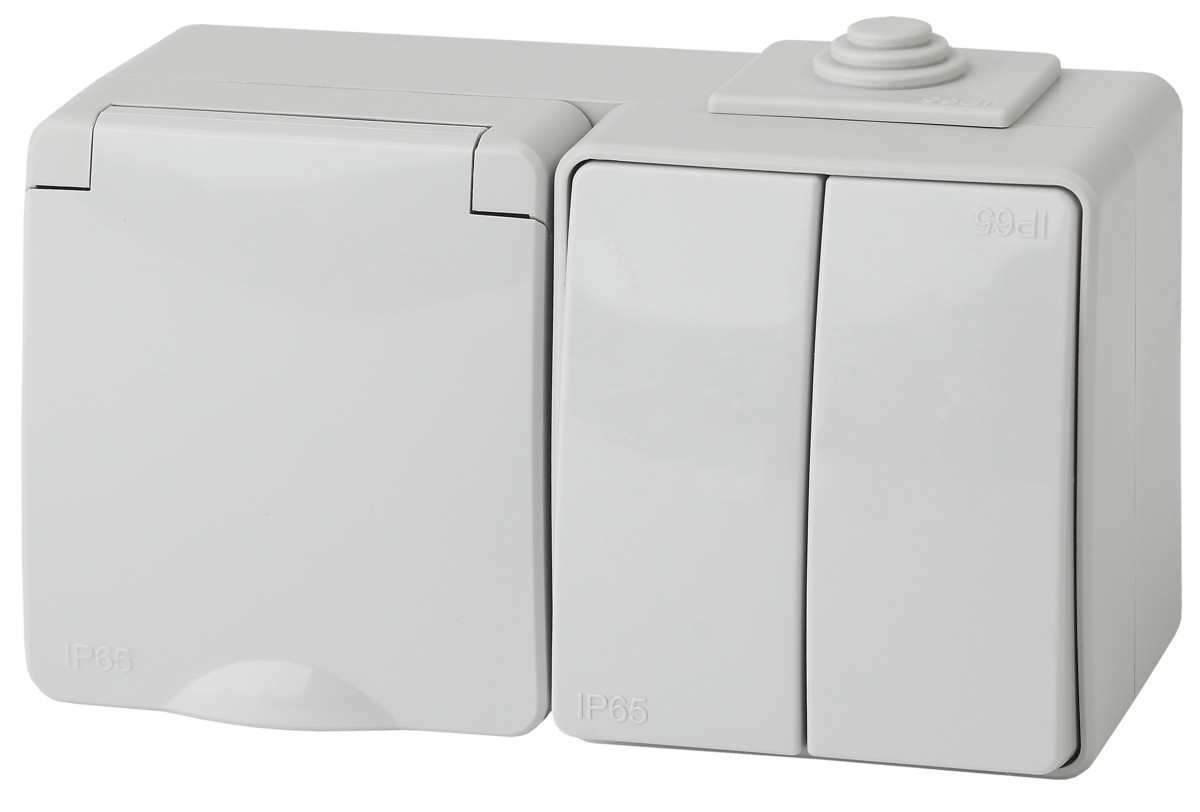 Блок ЭРА розетка+выключатель двойной гориз. IP65 16A(10AX)-250В ОУ Эра Эксперт 11-7602-03