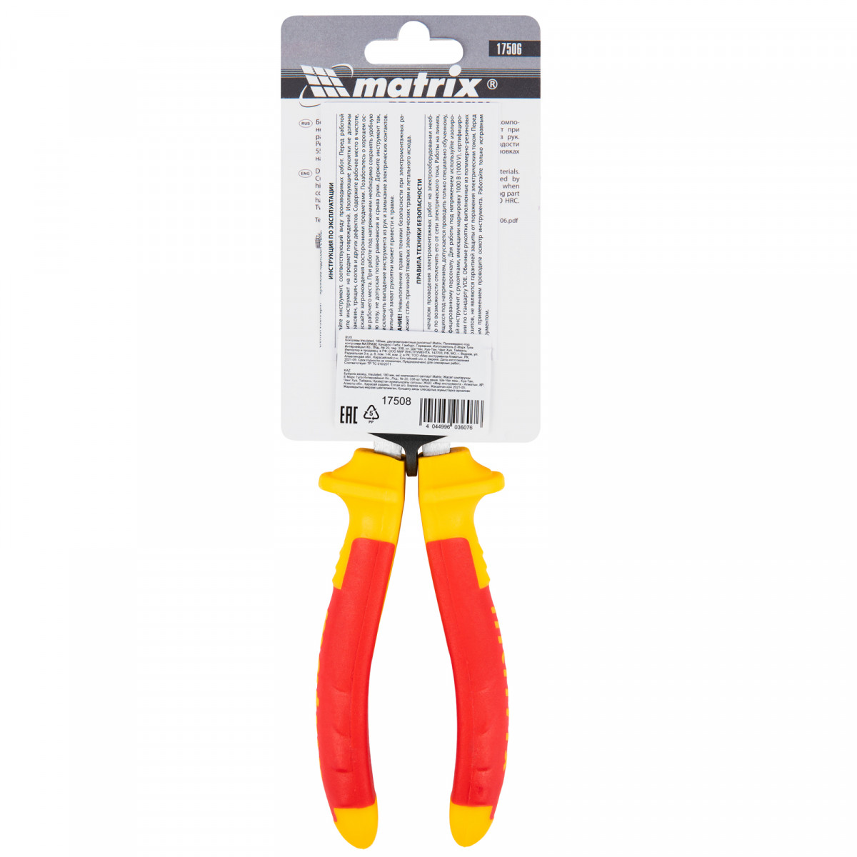 Бокорезы Matrix Insulated 17506 длиной 160 мм, с двухкомпонентными рукоятками, обладающими диэлектрическими свойствами и рассчитанными на напряжение до 1000 Вт, предназначены для откусывания проволоки, кабеля и проводов. Пригодятся также для резки материалов из металла и пластика. Важно — перед началом работ необходимо отключить напряжение в сети!