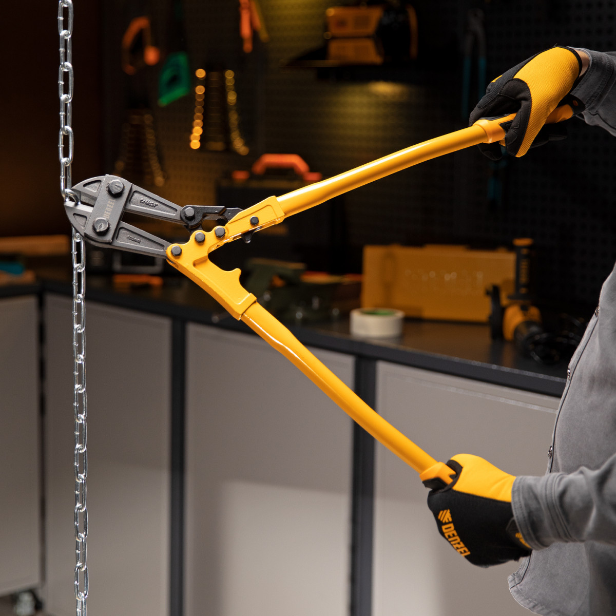 Болторез Denzel 78536 длиной 600 мм (24 дюймов), из стали Cr-Mo, предназначен для перекусывания стальных прутков диаметром 9,5 мм, болтов и шурупов, тросов, разнородной проволоки.