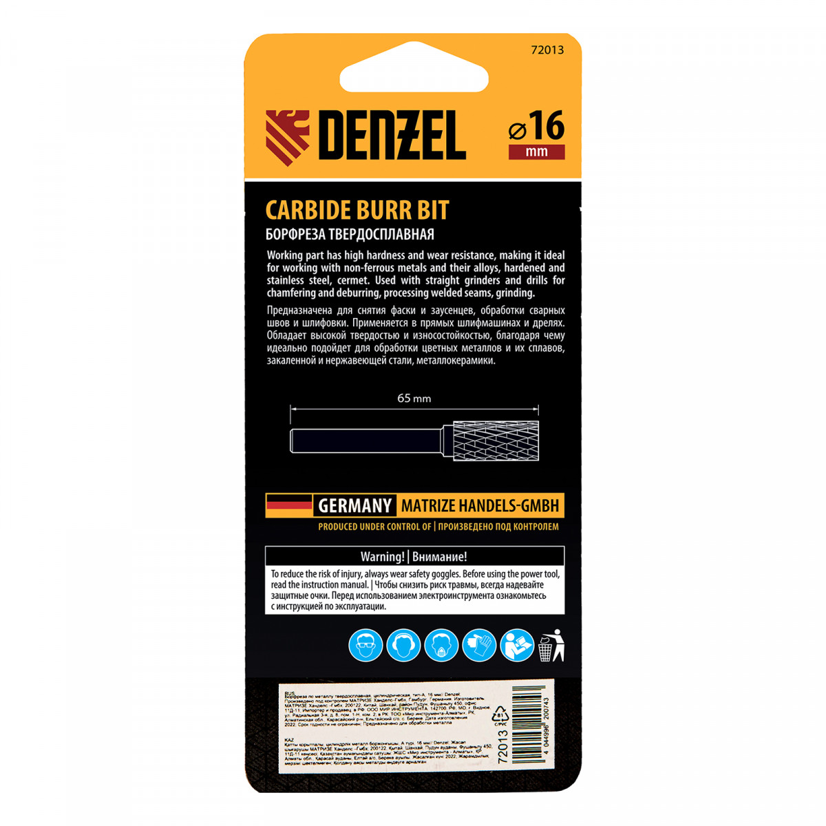 Борфреза по металлу твердосплавная, цилиндрическая, тип-А, 16 мм Denzel