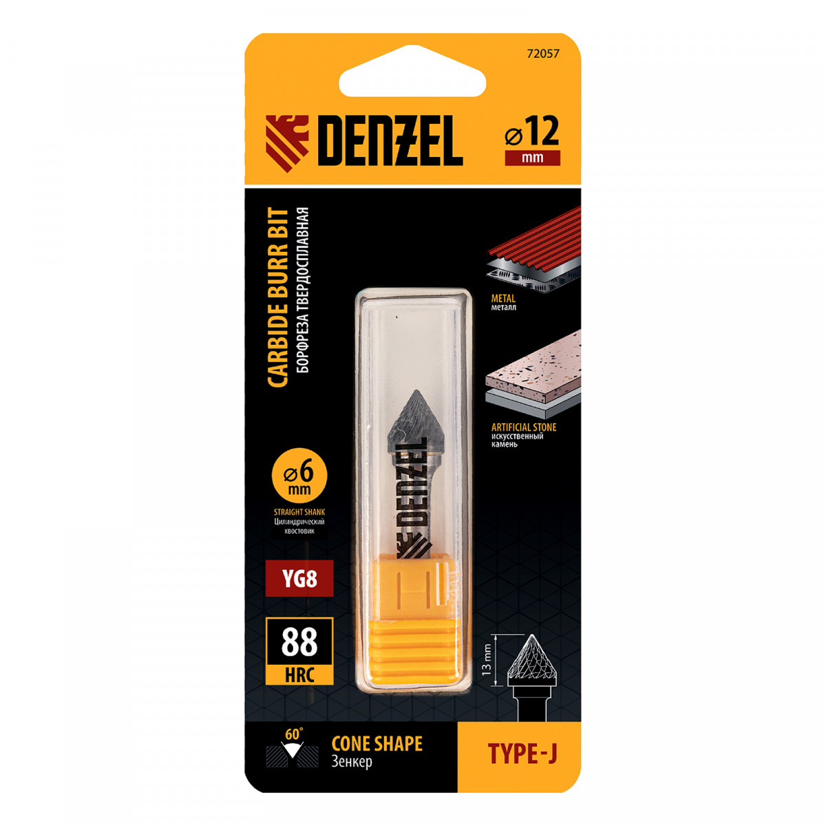 Борфреза по металлу твердосплавная, зенкер 60 град., тип-J, 12 мм Denzel