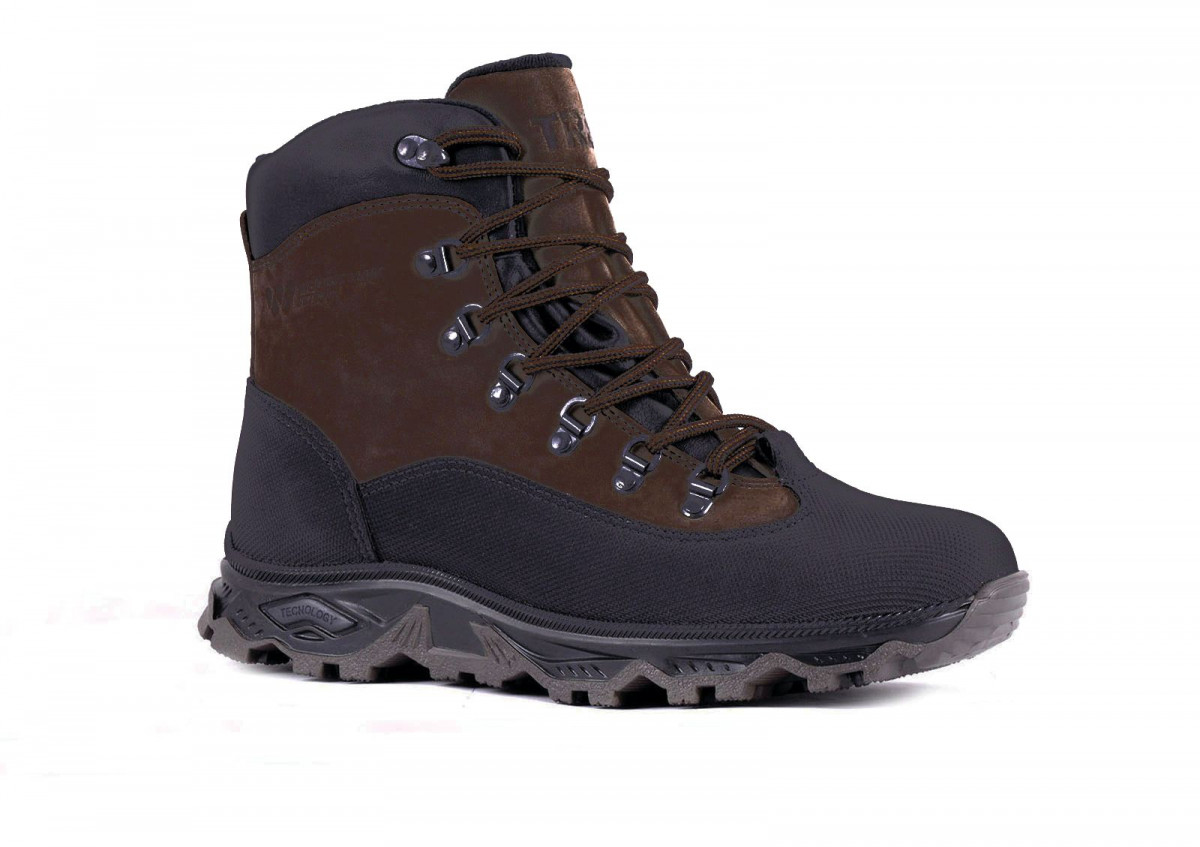 Легендарная модель TREK Турист. Пользуется популярностью у походников, охотников и рыбаков. Да и в городе эту модель носят с большим удовольствием из-за хорошей, комфортной высоты ботинка, конструкции язычка в виде закрытого клапана - так что ни влага, ни грязь внутрь вашего ботинка не попадет. Верх ботинка изготовлен из толстого нубука с водоотталкивающей пропиткой. Подошва легко очищается от грязи и снега, не скользит, а материал ТЭП, из которого она сделана, не "дубеет" при минус 50 градусов! Комфортный температурный диапазон использования ботинка: от +5С до -15С, а при грамотном подборе теплого носка до минус 30 градусов!