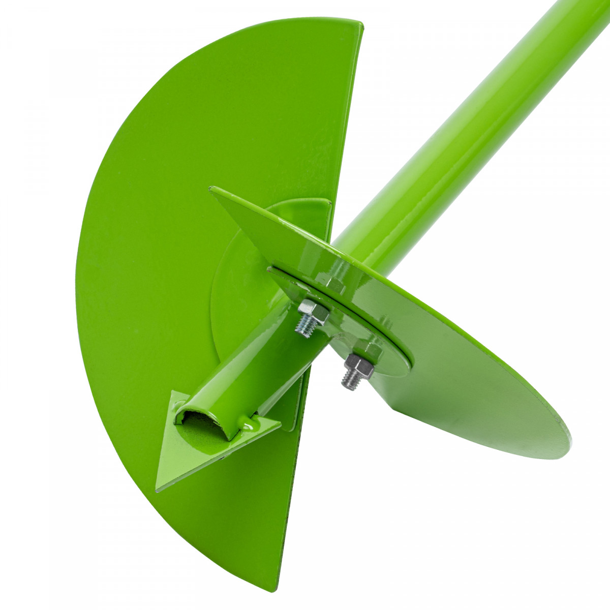 Лопастной бур Сибртех 64399 длиной 2110 мм, с удлинителем и сменными ножами, позволяет проделывать в грунте углубления диаметром 150 и 200 мм. Инструмент значительно экономит время при проведении земляных работ — подготовки грунта под посадку растений или внесения подкормки, бурения цилиндрических отверстий под посадку деревьев, установку свай, столбов и других опор.