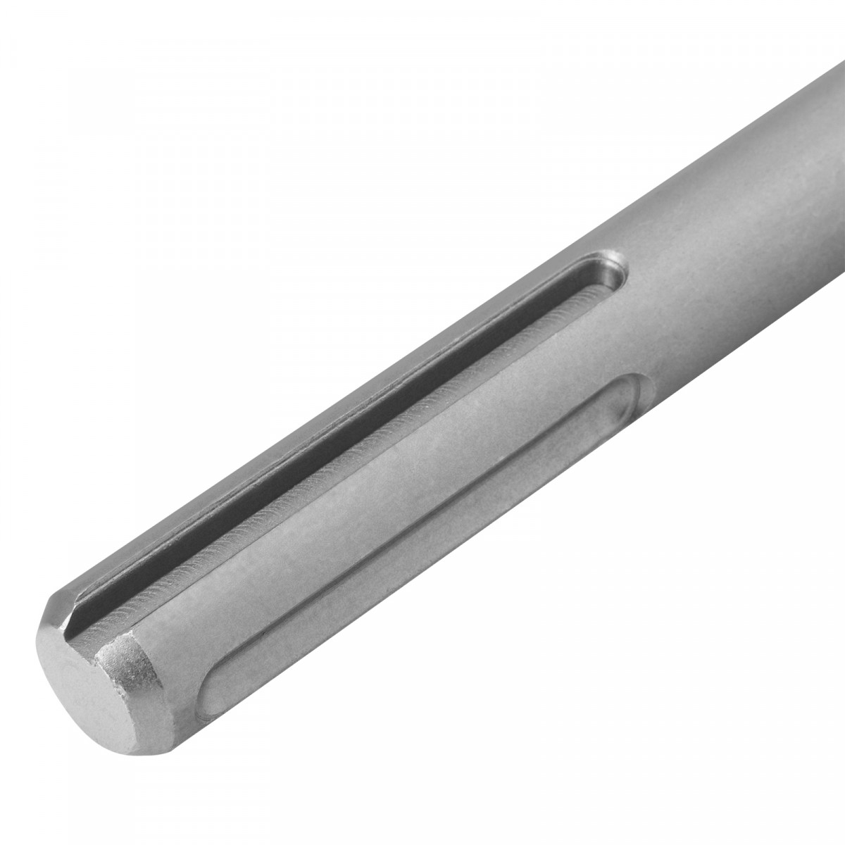 - Износостойкость — спиральная часть бура выполнена из легированной стали 40Х и закалена до необходимой твердости, поэтому выдерживает высокие динамические нагрузки без риска деформации.