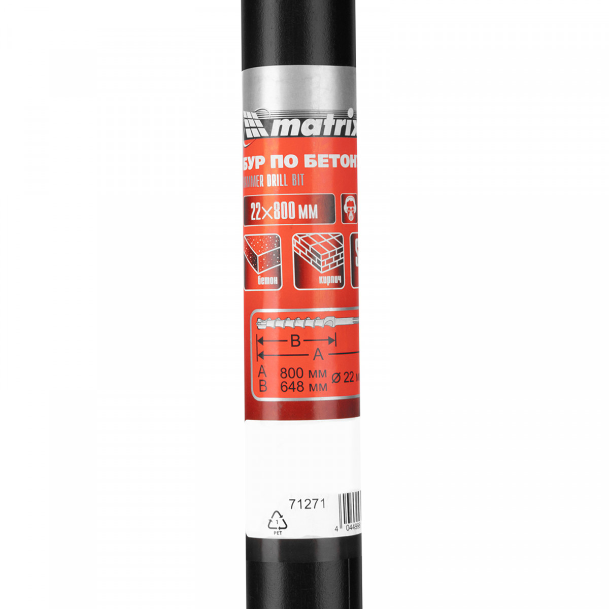 Бур по бетону Matrix 71271 размером 22 х 800 мм используется в качестве оснастки на тяжелых перфораторах с хвостовиком SDS MAX. Подходит для сверления глубоких отверстий в кирпиче и особо прочных материалах: армированном бетоне, природном и искусственном камне.