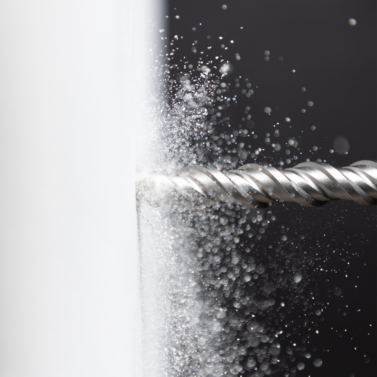 Двойная спираль и три пылеотводящие кромки для эффективного отвода пыли при сверлении бетона.