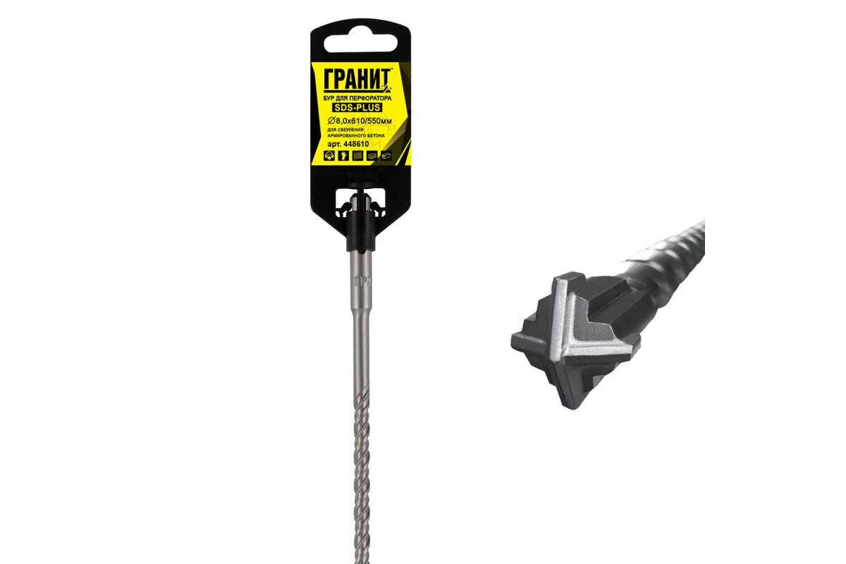 Бур предназначен для перфораторов с системой крепления SDS-plus. Применяется для сверления глухих и сквозных отверстий в каменной кладке, бетоне и железобетоне. Форма наконечника с 4 кромками предотвращает заклинивание и поломку, обеспечивая высокие результаты. Наконечник с углом поворота и 4-канальная конструкция обеспечивают повышенное удаление пыли и шлама для быстрого бурения с пониженным износом.