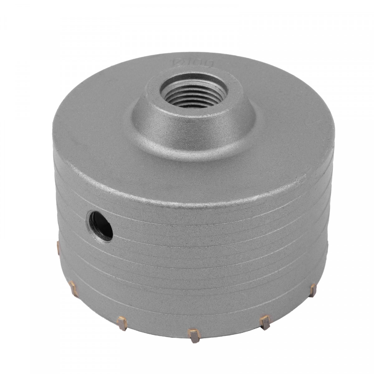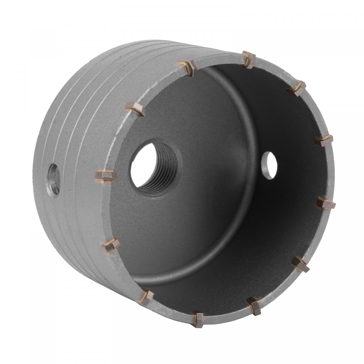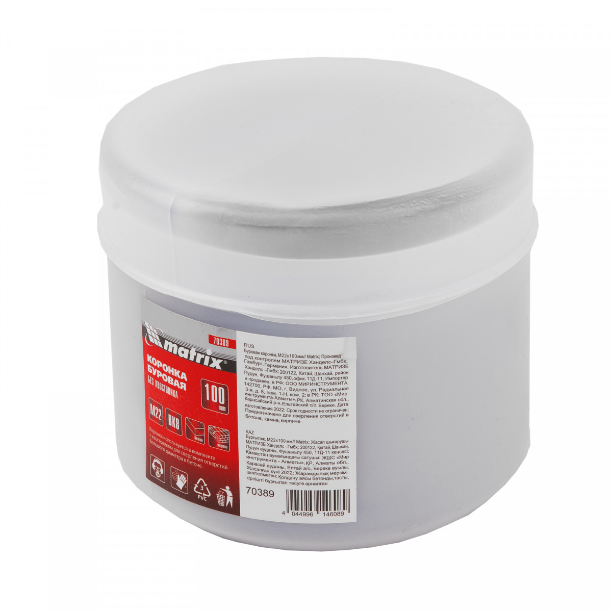 Буровая коронка M22 х 100 мм Matrix 70389 рассчитана на сверление отверстий в бетоне, кирпиче, граните, природном и искусственном камне. Устанавливается на ударные дрели или перфораторы с патронами под хвостовик SDS-Plus или SDS-Max. Коронка позволяет получить большие отверстия, поэтому пригодится для монтажа розеток, выключателей и прокладки труб.