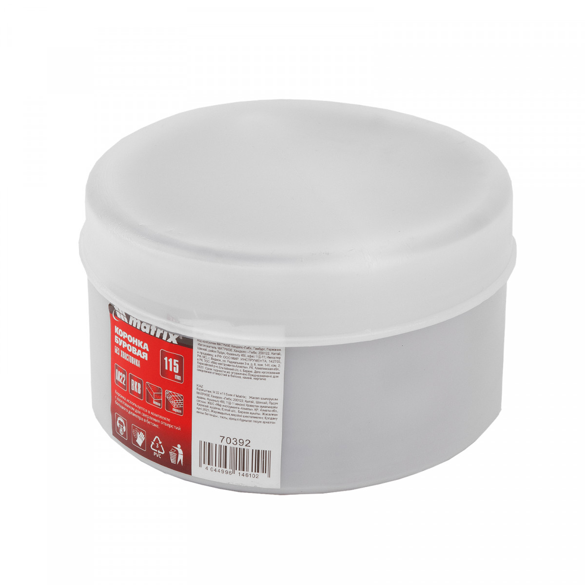 Буровая коронка Matrix 70392 с посадкой M22, диаметром 115 мм, рассчитана на сверление отверстий в бетоне, кирпиче, граните, природном и искусственном камне. Устанавливается на ударные дрели или перфораторы с патронами под хвостовик SDS-Plus или SDS-Max. Коронка позволяет получить большие отверстия, поэтому пригодится для монтажа розеток, выключателей и прокладки труб.