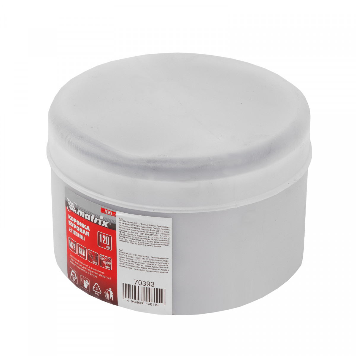 Буровая коронка M22 х 120 мм Matrix 70393 рассчитана на сверление отверстий в бетоне, кирпиче, граните, природном и искусственном камне. Устанавливается на ударные дрели или перфораторы с патронами под хвостовик SDS-Plus или SDS-Max. Коронка позволяет получить большие отверстия, поэтому пригодится для монтажа розеток, выключателей и прокладки труб.