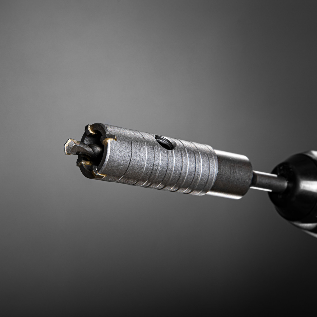 • Эффективность — спиральная канавка на корпусе обеспечивает улучшенный отвод продуктов сверления, что снижает нагрузку на перфоратор и повышает скорость работы.