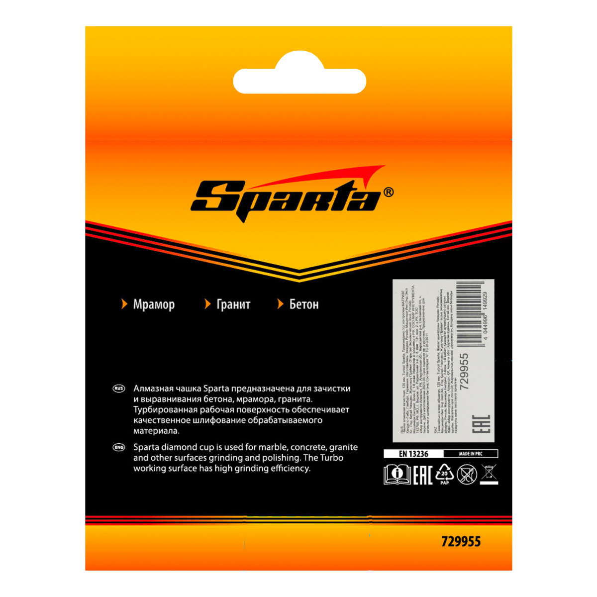 Чашка алмазная зачистная, 125 мм, Turbo Sparta