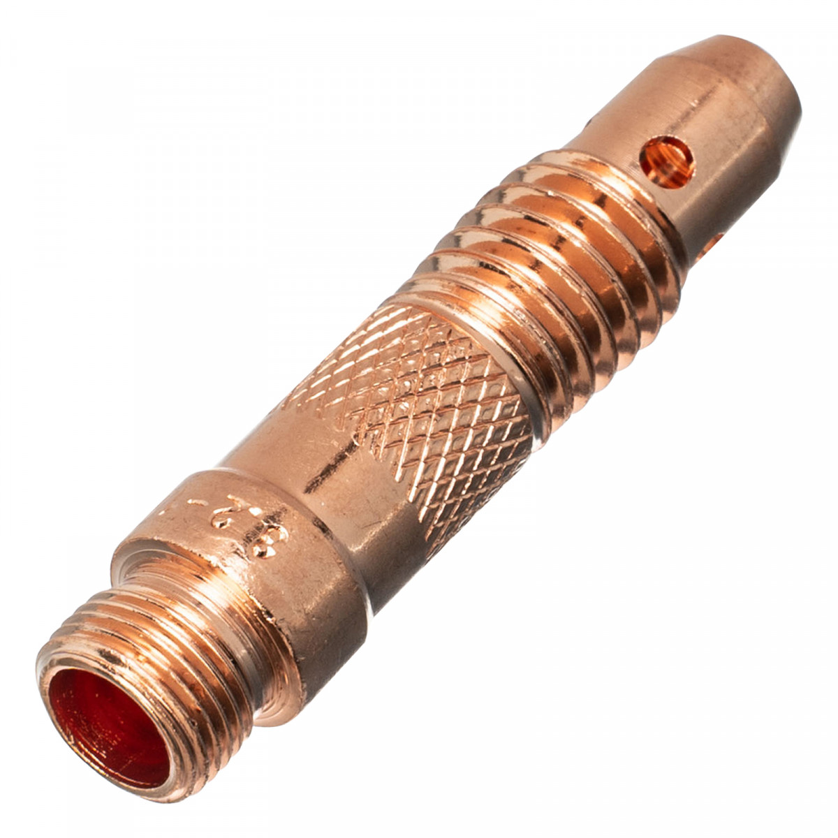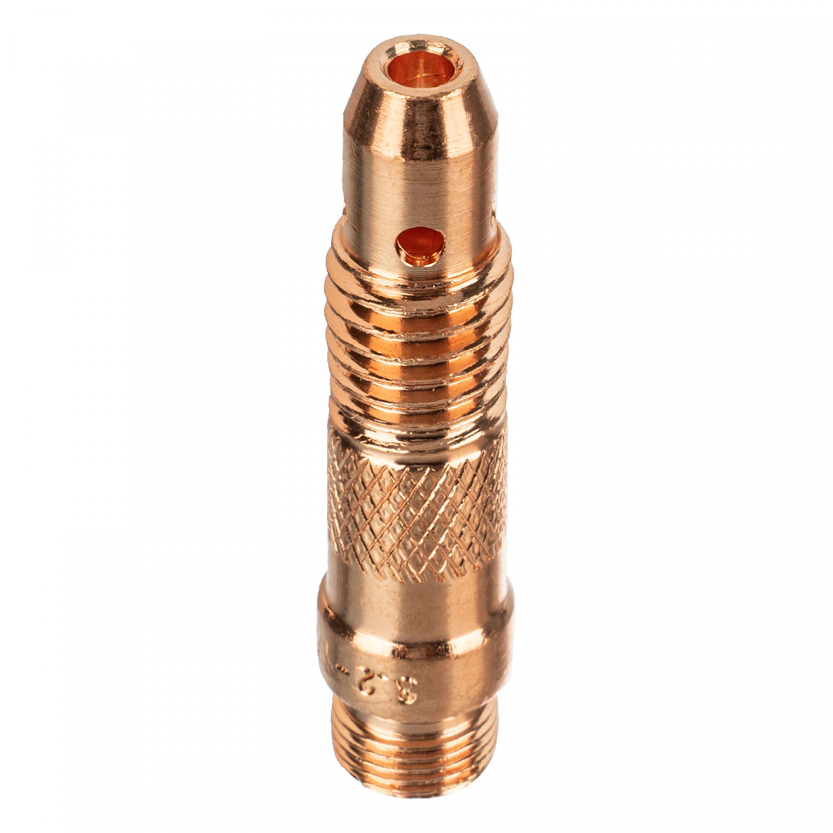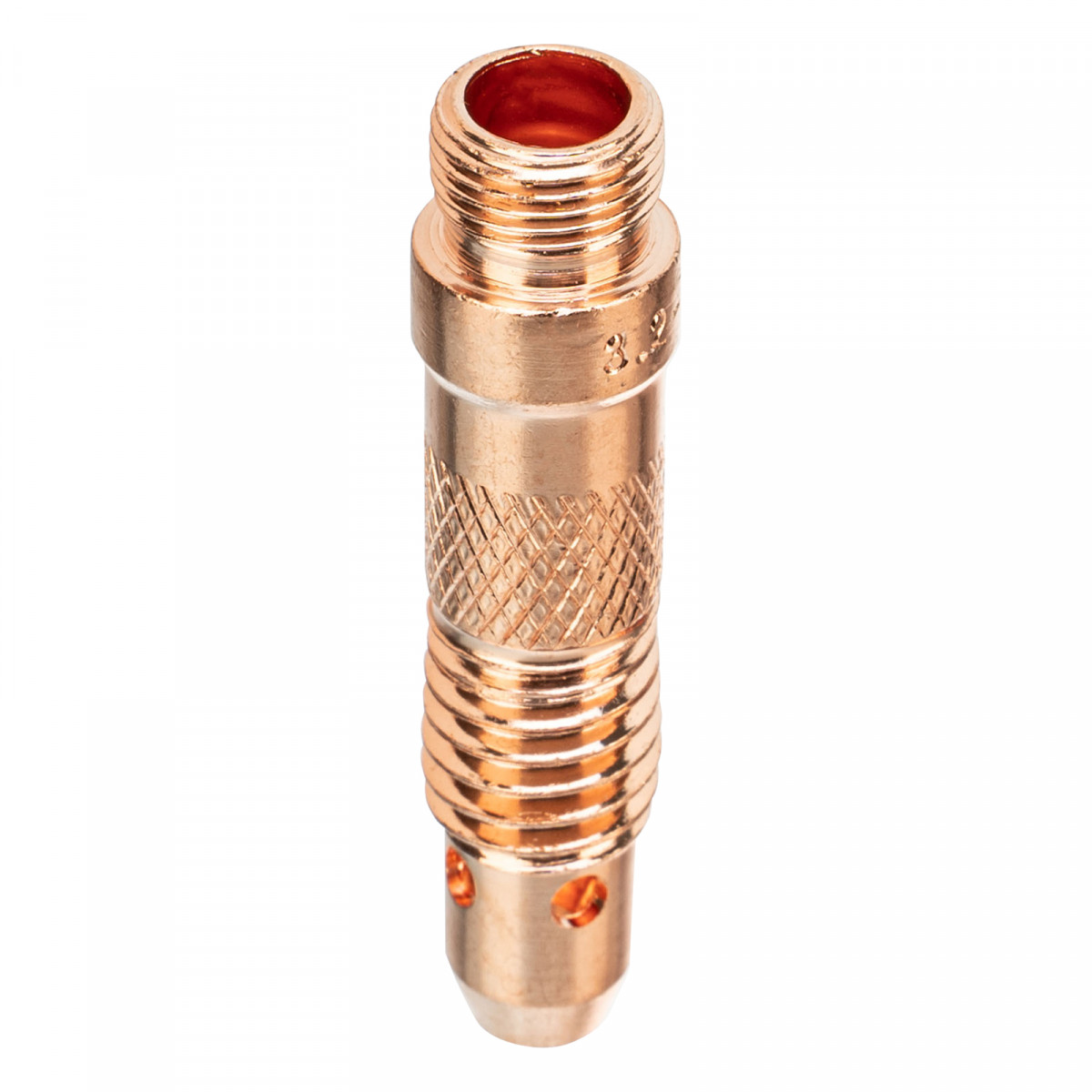 Держатель цанги Denzel 93655 входит в набор из 10 шт. и надежно фиксирует в сопле газовой горелки цангу с электродом диаметром 2, 2,4 и 3,2 мм. Используется для аргонодуговой сварки и совместим со сварочными горелками TIG 93643, 93644, а также может устанавливаться на модели других торговых марок с аналогичным посадочным разъемом.