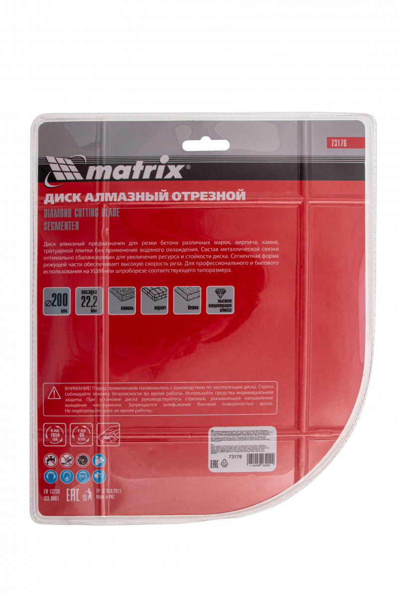 Диск алмазный, отрезной сегментный, 200 х 22.2 мм, сухая резка Matrix Professional