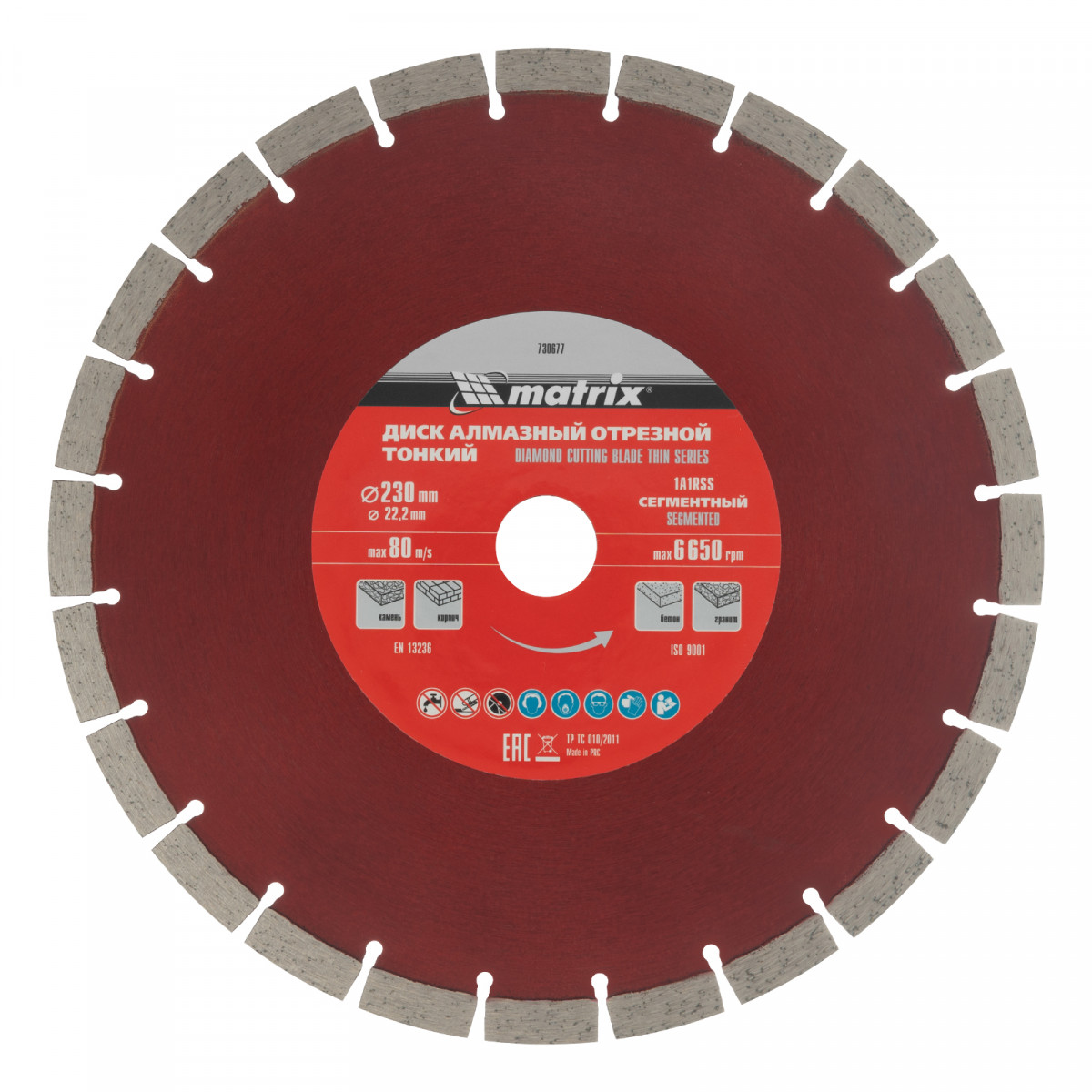 Отрезной сегментный алмазный диск Matrix Professional 730677 диаметром 230 х 22,2 мм, с тонким корпусом, позволяет проводить сухую резку свежего и старого бетона, камня, гранита, шлакоблока, тротуарной плитки, песчаника и кирпича с помощью УШМ. Подходит для частного и профессионального использования. Благодаря тонкому корпусу диска нагрузка на инструмент снижена, что позволяет ускорить рабочий процесс на 20%.