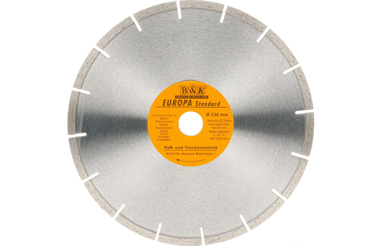 Диск алмазный отрезной по бетону и камнюПрименим в использовании УШМ, бензореза и настольных пил.Для сухой резки бетона, гранита, кирпича, камня и других строительных материалов.Режущая кромка разбита на сегменты с компенсационными отверстиями по всей окружности.Диск выполнен из высококачественной стали и эффективно работает без принудительного охлаждения алмазного слоя.Внимание, изображение товара может отличаться от реального! Верные параметры указаны в технических характеристиках товара