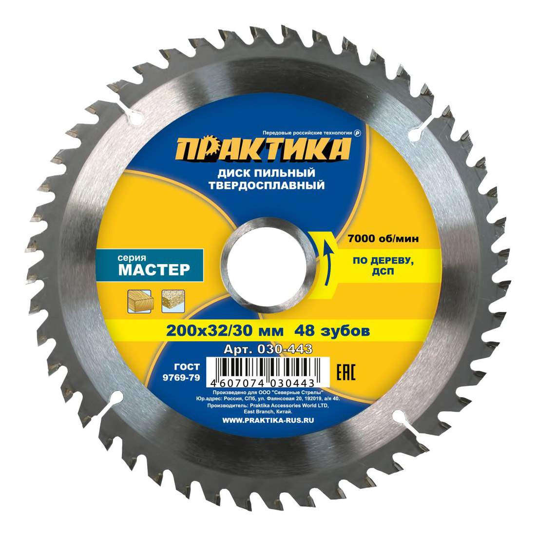 Диск пильный 200*32/30 мм 48 зубьев по дереву, ДСП "Практика"