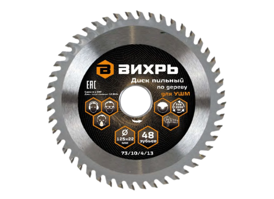Диск пильный по дереву для УШМ 125х22 мм 48 зубьев+кольцо 20/22 16/22 Вихрь