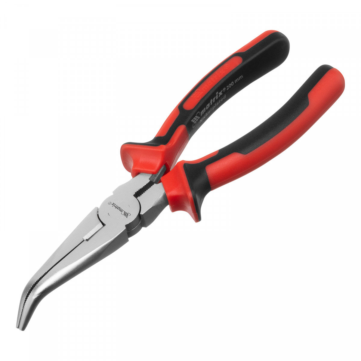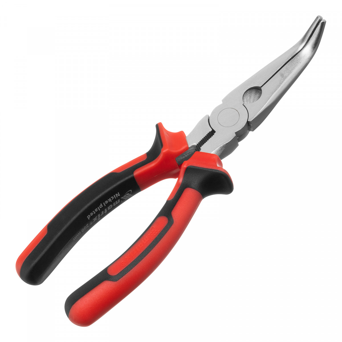 Длинногубцы изогнутые Nickel, 200 мм, никелированные, двухкомпонентные рукоятки Matrix
