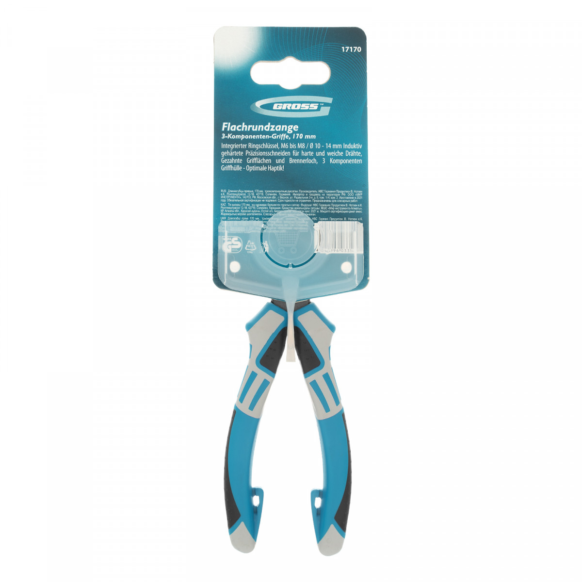 Длинногубцы прямые 170 мм, трехкомпонентные рукоятки Gross