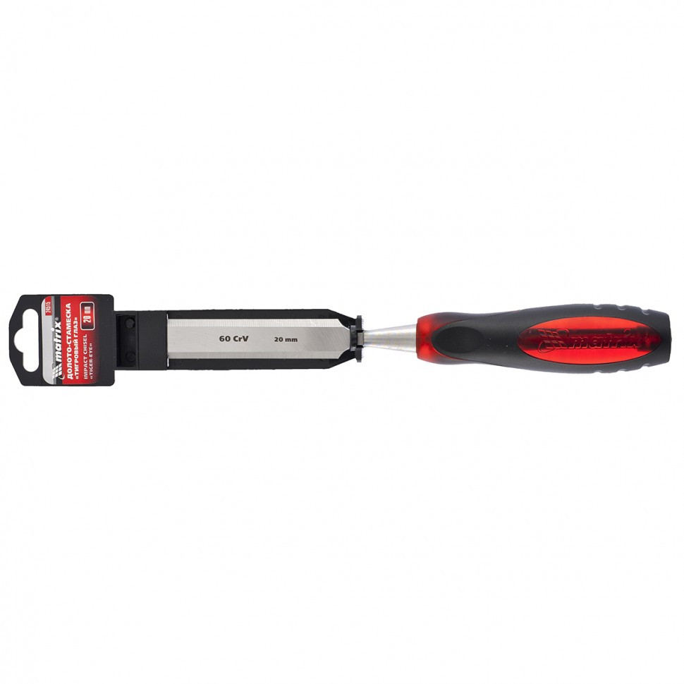 Долото-стамеска Matrix «Тигровый глаз» 24515 с полотном шириной 20 мм и двухкомпонентной обрезиненной рукояткой используется в столярном и плотницком деле, в производстве мебели. Позволяет вырезать углубления, формировать пазы, зачищать шипы и гнезда, снимать фаски. Инструмент выдерживает удары киянкой или молотком, т. к. металлический затыльник защищает его от деформации. Долото относится к профессиональному ручному инструменту, но может применяться и в домашних условиях.