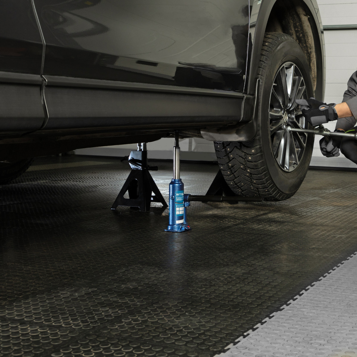 - Безопасная эксплуатация — благодаря предохранительному клапану домкрат не поднимает грузы тяжелее 2000 кг.
