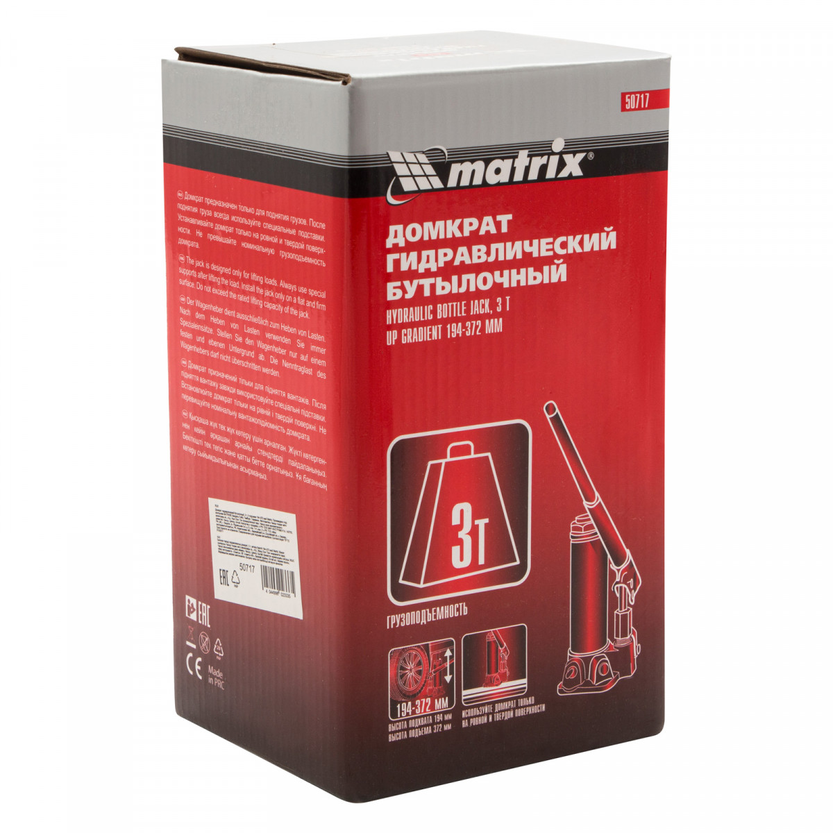 Домкрат гидравлический бутылочный Matrix 50717 используется для поднятия грузов массой до 3 т на высоту 194-372 мм. Подходит для автомобилей с высоким клиренсом. Домкрат будет полезен автолюбителям в гараже и дороге, а также сотрудникам СТО.