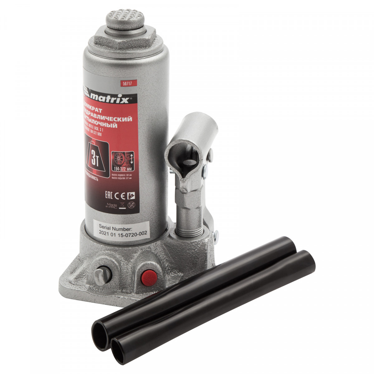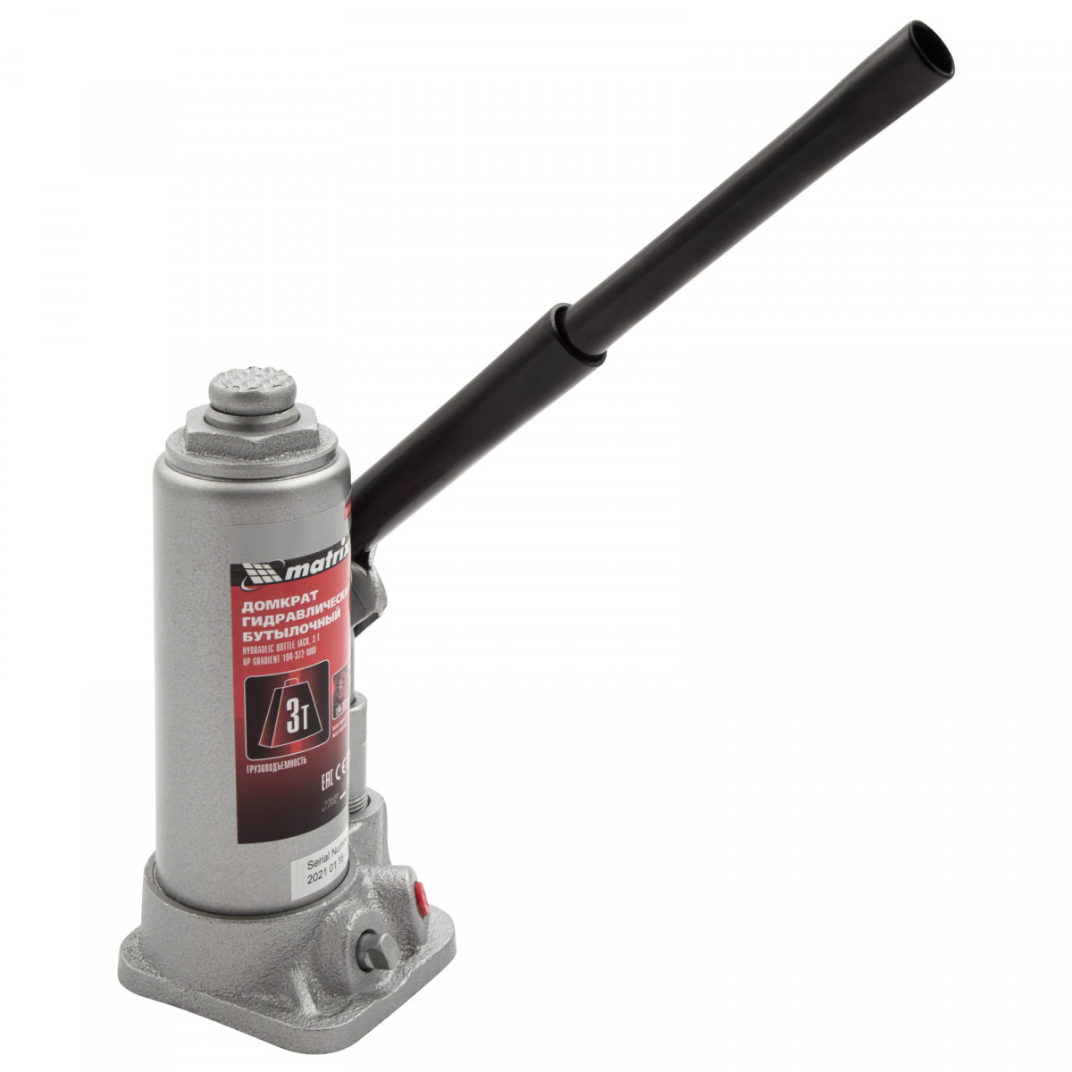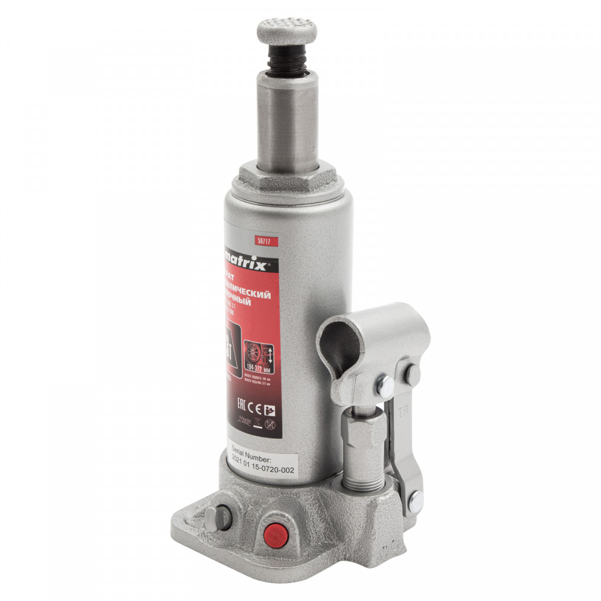 Домкрат гидравлический бутылочный, 3 т, высота подъема 194-372 мм Matrix