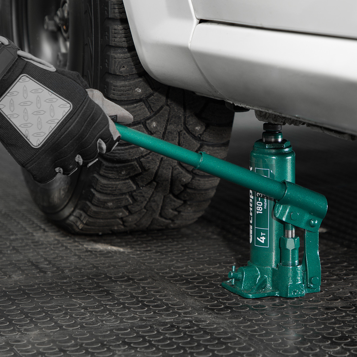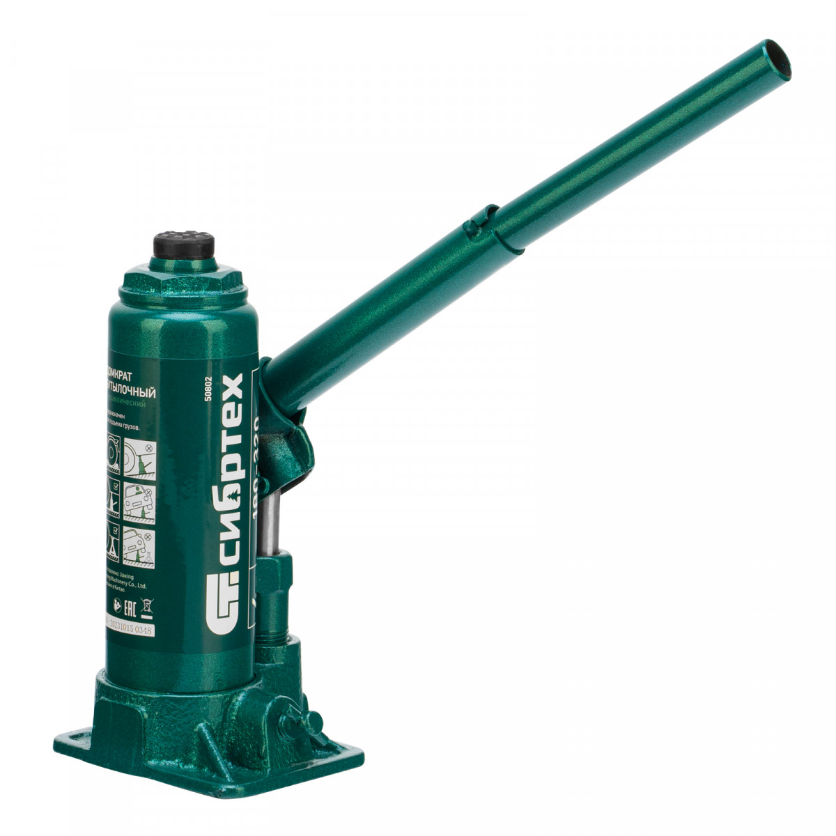 Домкрат гидравлический бутылочный Сибртех 50802 предназначен для подъема грузов массой до 4 т на высоту от 180 до 320 мм. Не требует больших усилий от пользователя и значительно облегчает рабочий процесс. Домкрат будет полезен при проведении техобслуживания машины в автосервисе или гараже.