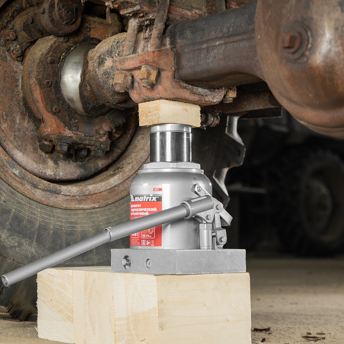 Домкрат гидравлический бутылочный Matrix 50737 используется для поднятия грузов массой до 50 т на высоту 236-356 мм. Подходит для автомобилей с высоким клиренсом. Домкрат будет полезен автолюбителям в гараже и дороге, а также сотрудникам СТО.