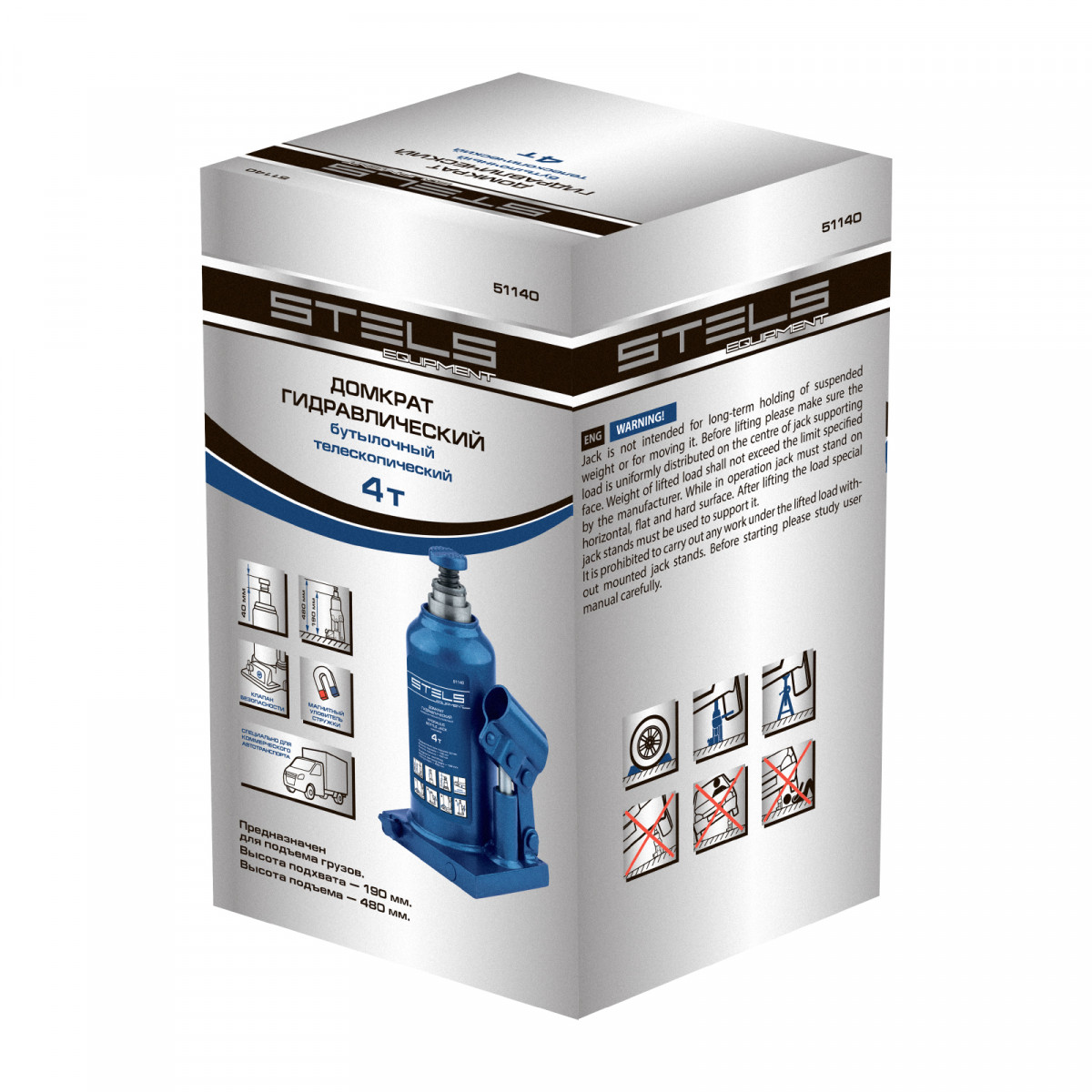 Гидравлический бутылочный телескопический домкрат Stels 51140 используется для поднятия грузов весом до 4 т с на высоту 190-480 мм. Не требует больших усилий и оптимален для автомобилей с большим клиренсом. Домкрат можно использовать в гараже для самостоятельного ремонта машины или в автосервисе для решения профессиональных задач.