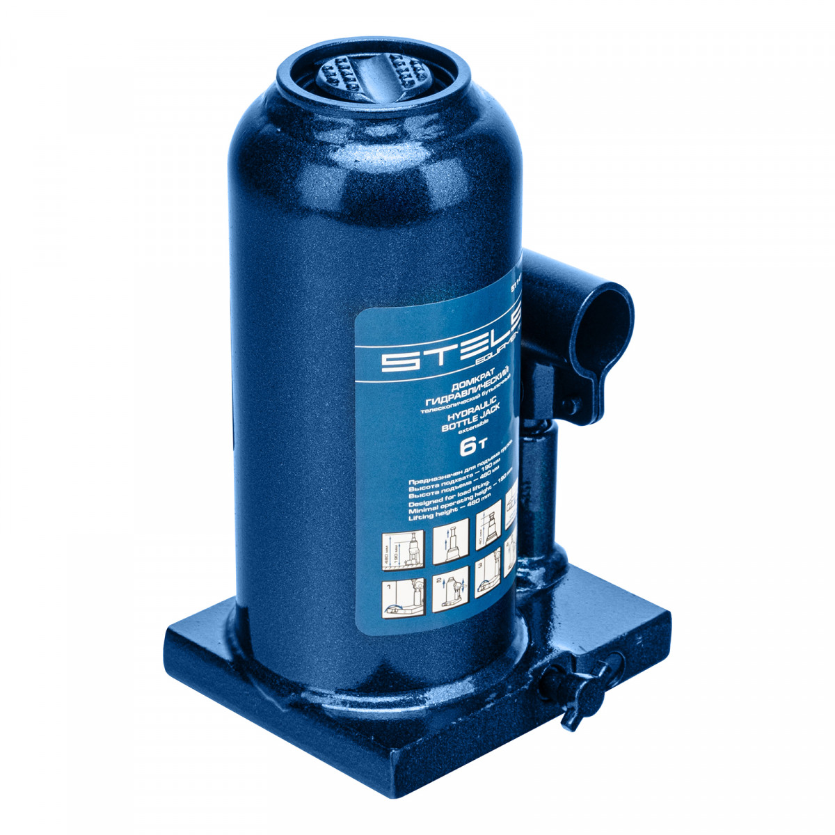 Домкрат гидравлический бутылочный телескопический, 6 т, h подъема 190-480 мм Stels