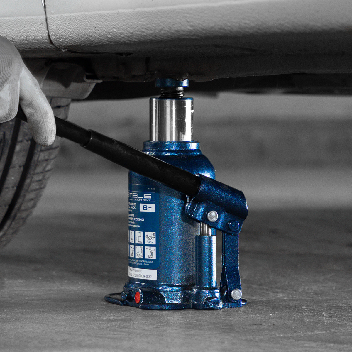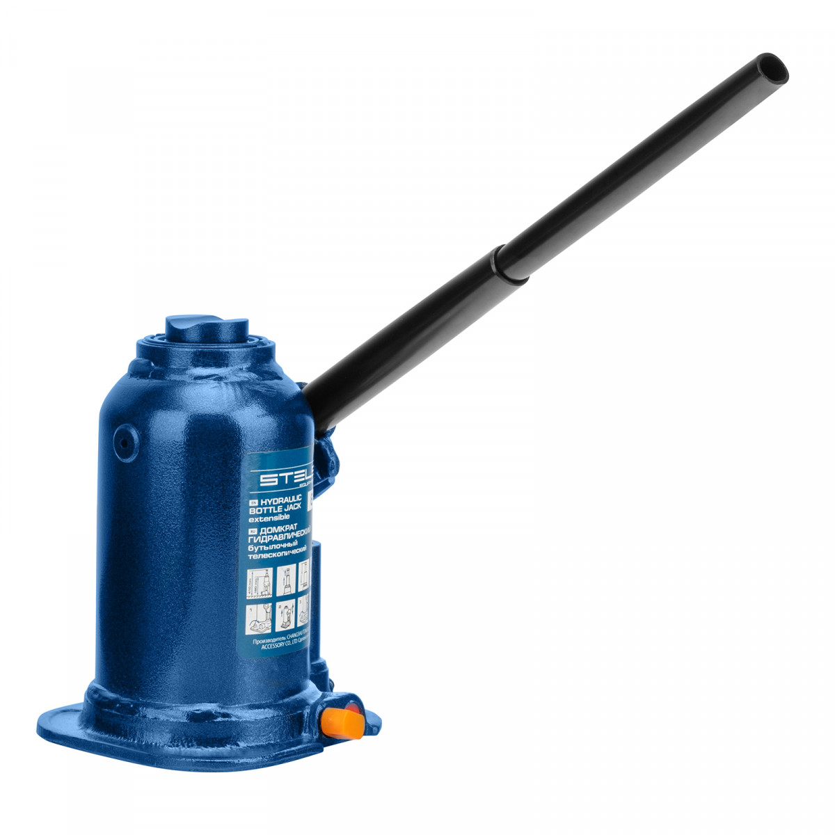 Домкрат гидравлический бутылочный Stels 51149, телескопический, используется для поднятия грузов весом до 6 т с на высоту 180-410 мм. Не требует больших усилий и оптимален для автомобилей с большим клиренсом. Домкрат можно использовать в гараже для самостоятельного ремонта машины или в автосервисе для решения профессиональных задач.