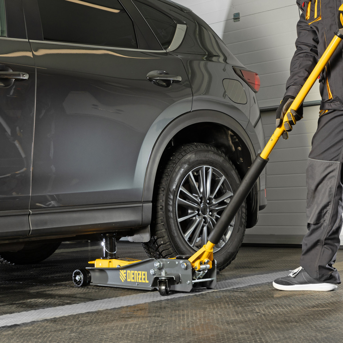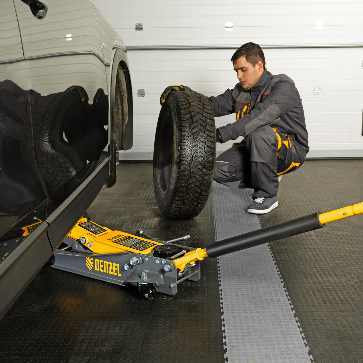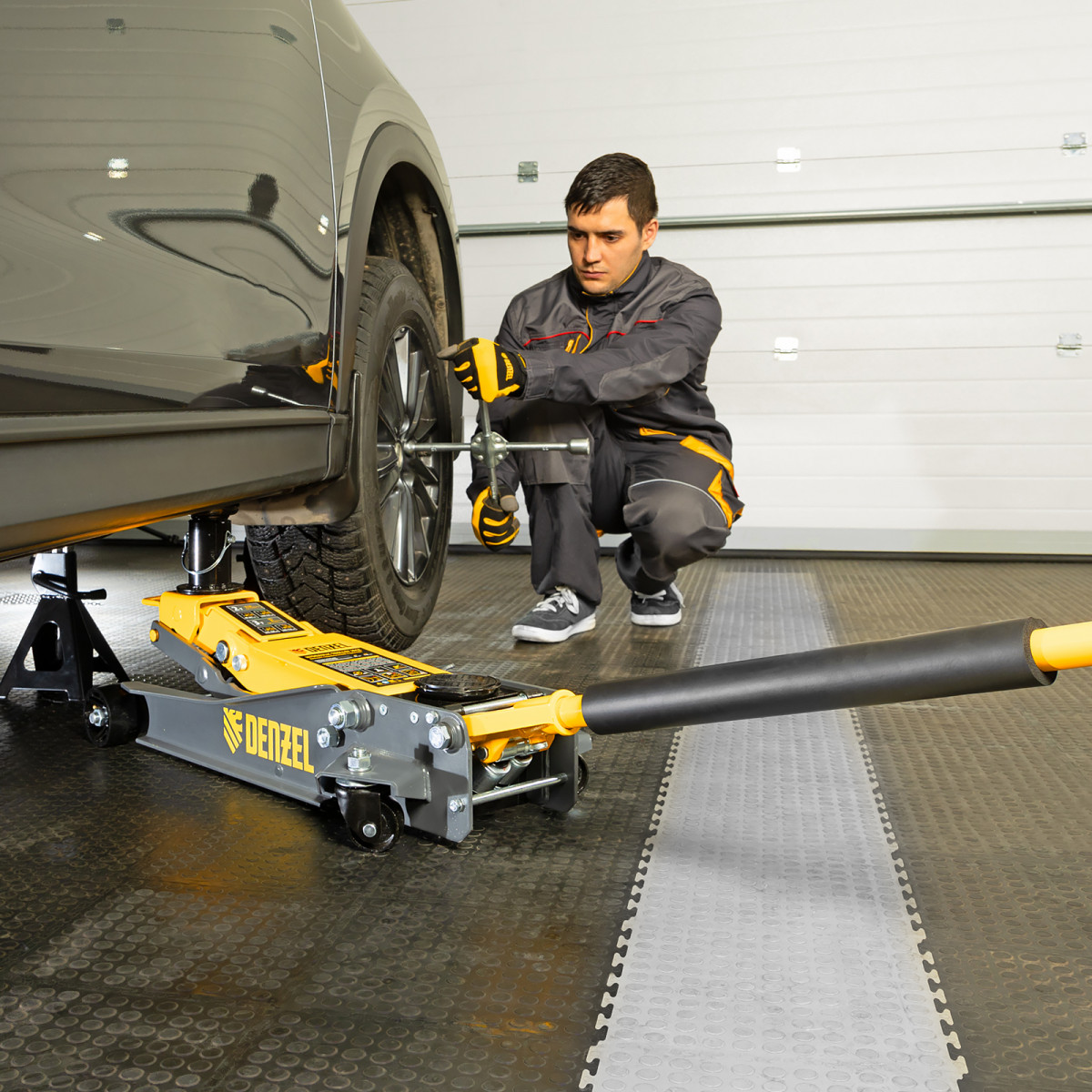 • Аккуратная работа — резиновая опора и прорезиненная рукоятка защищают кузов и днище автомобиля от нежелательных повреждений.
