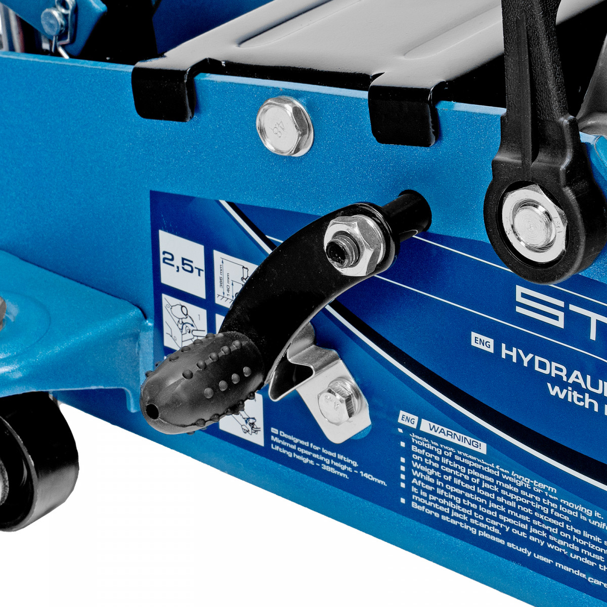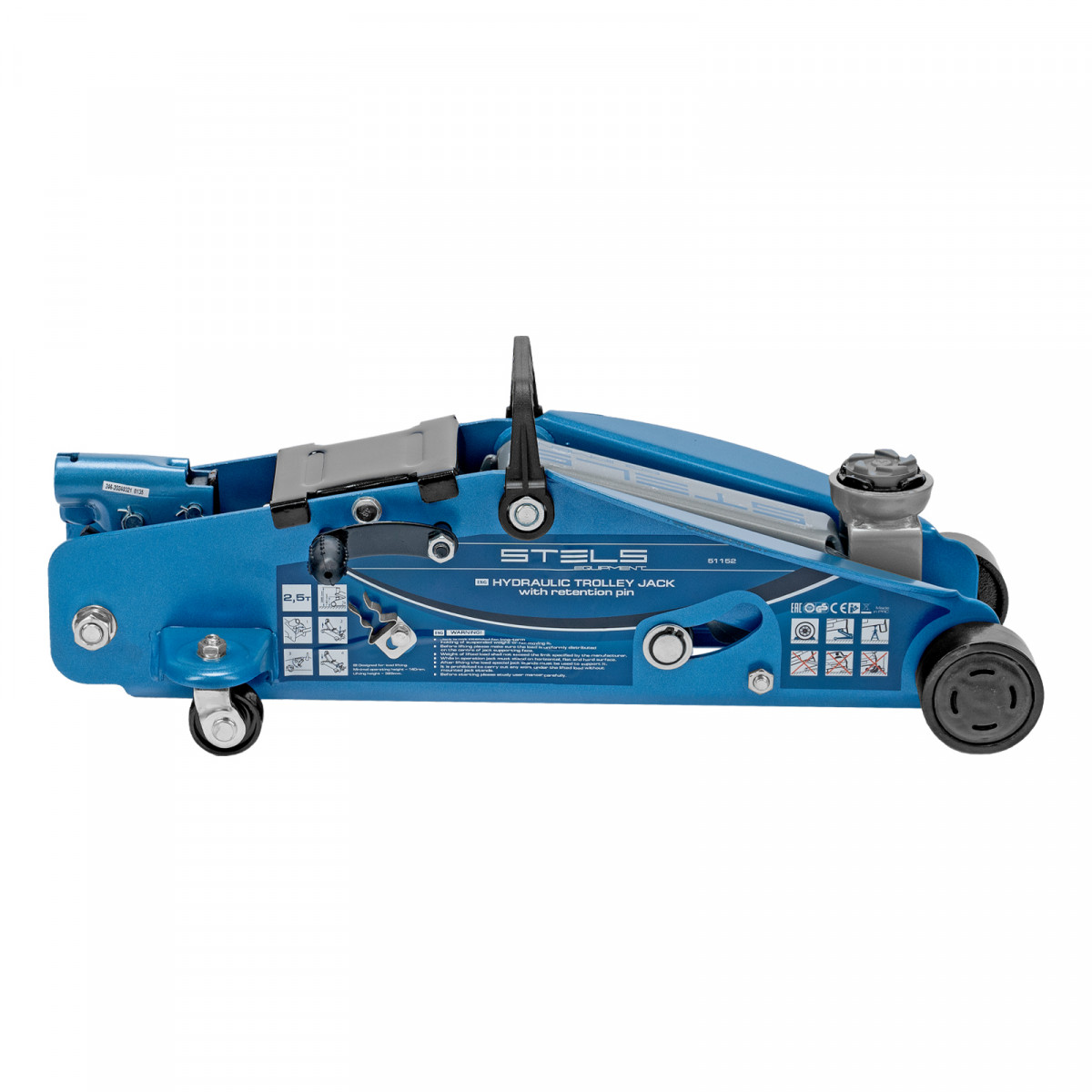 Домкрат гидравлический подкатной 2.5 т, с фиксатором, Safety Pin, 140-385 мм Stels