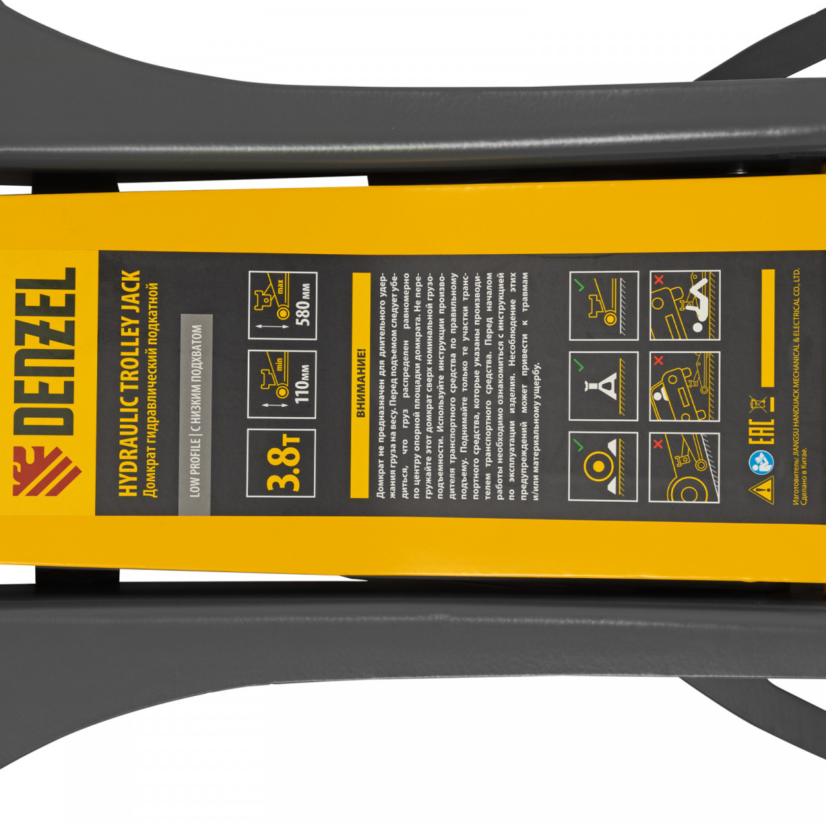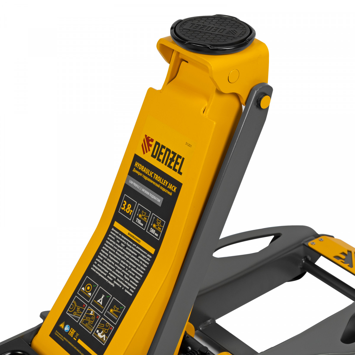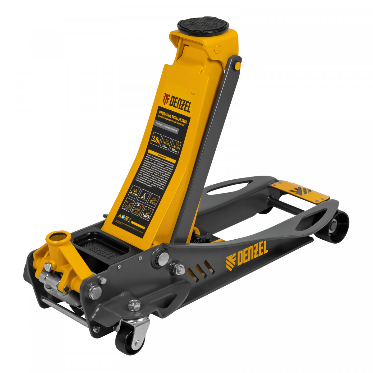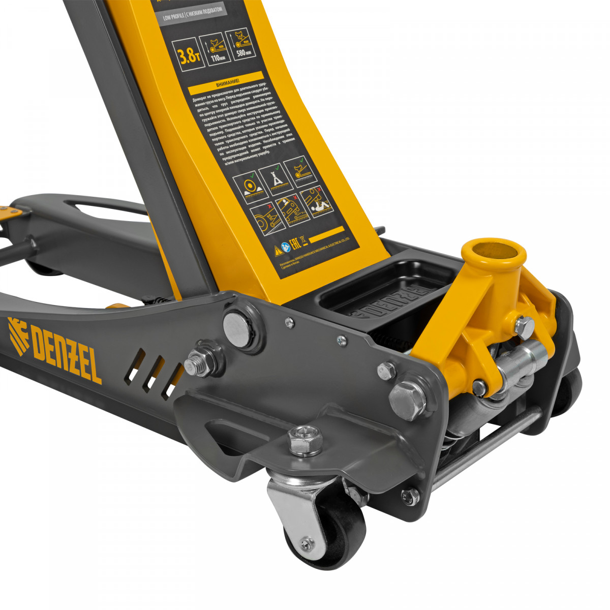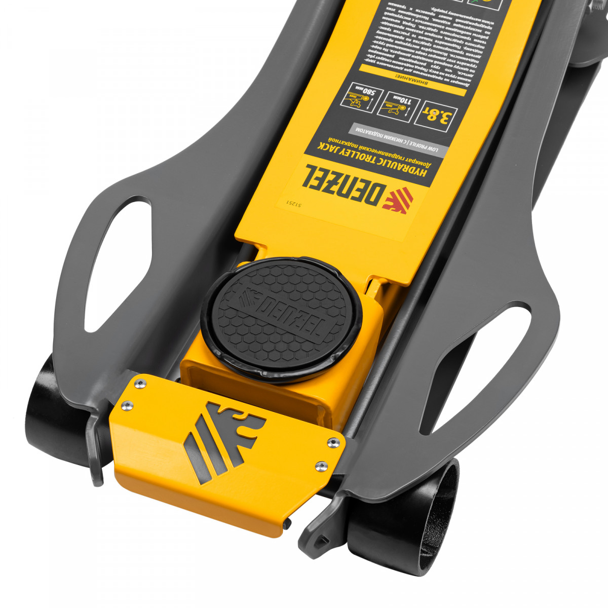Домкрат гидравлический подкатной, 3,8 т, 110-580 мм, быстрый подъем, низкий подхват, проф. Denzel