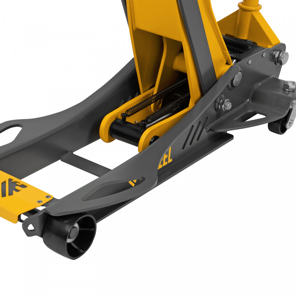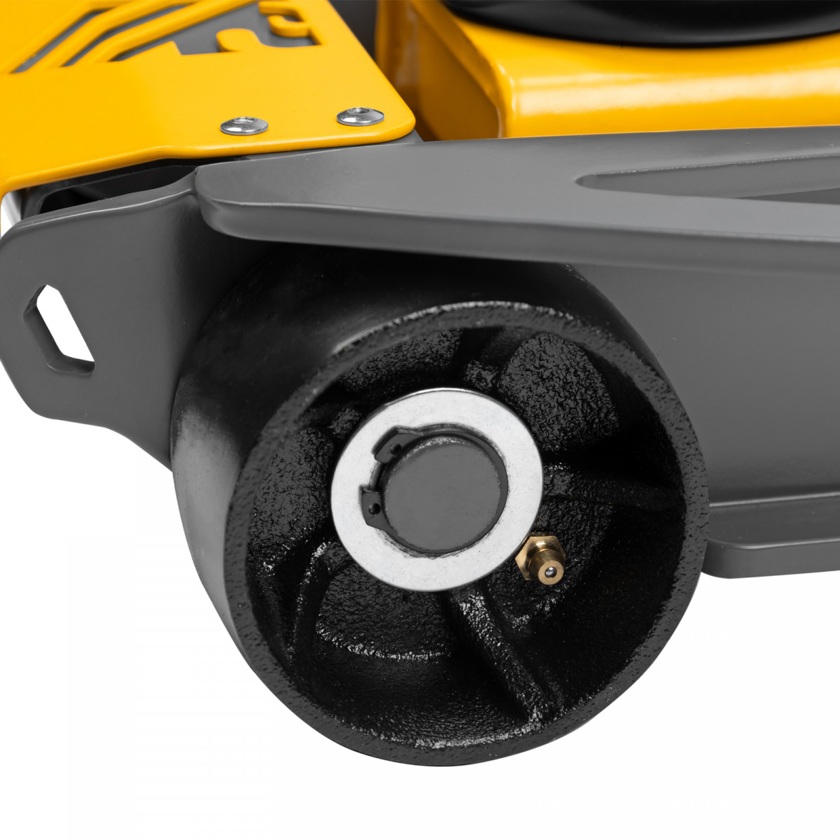 • Внимание к деталям — передние колеса домкрата имеют масленки для смазки подшипников, такое решение исключает возможность заклинивания механизма во время интенсивной работы.