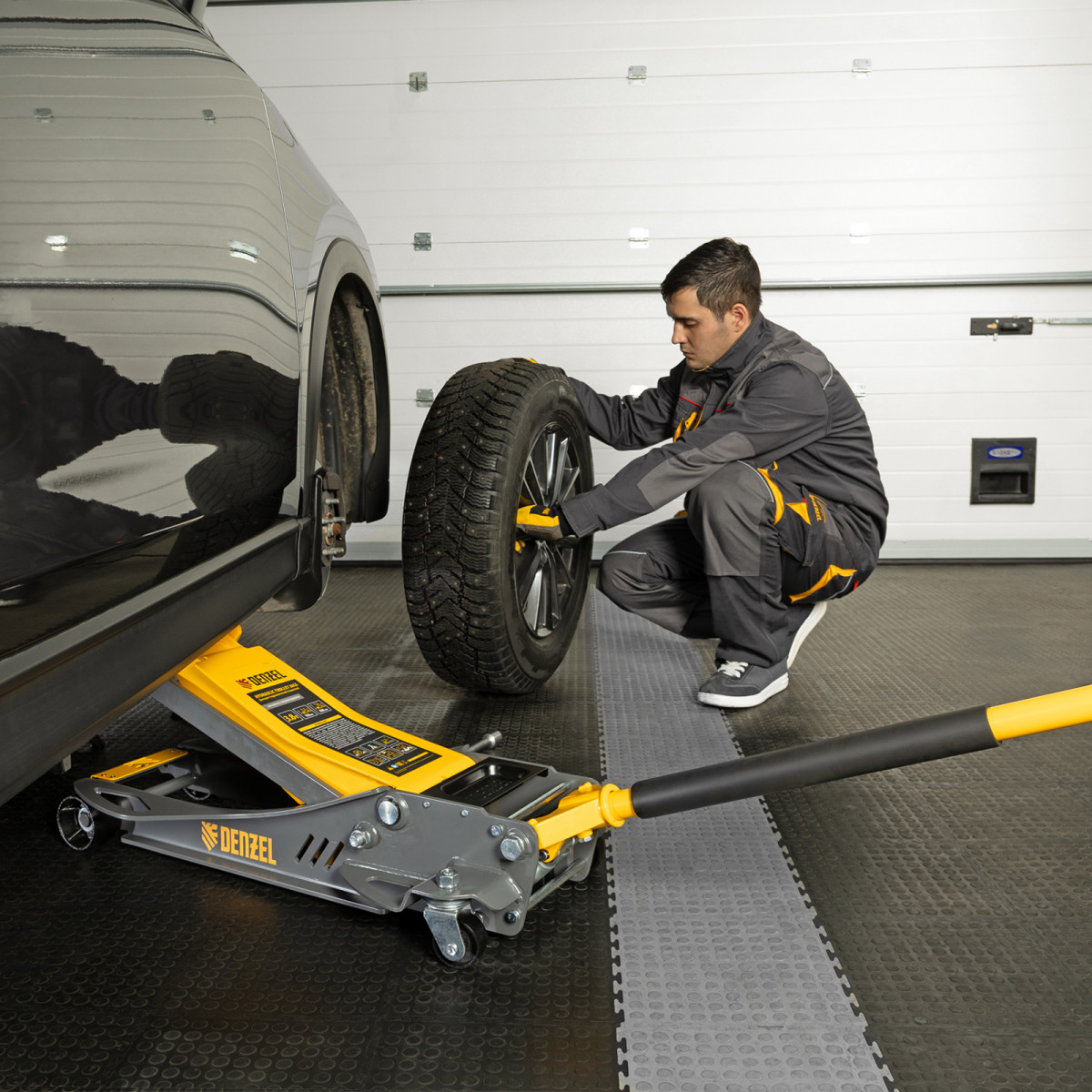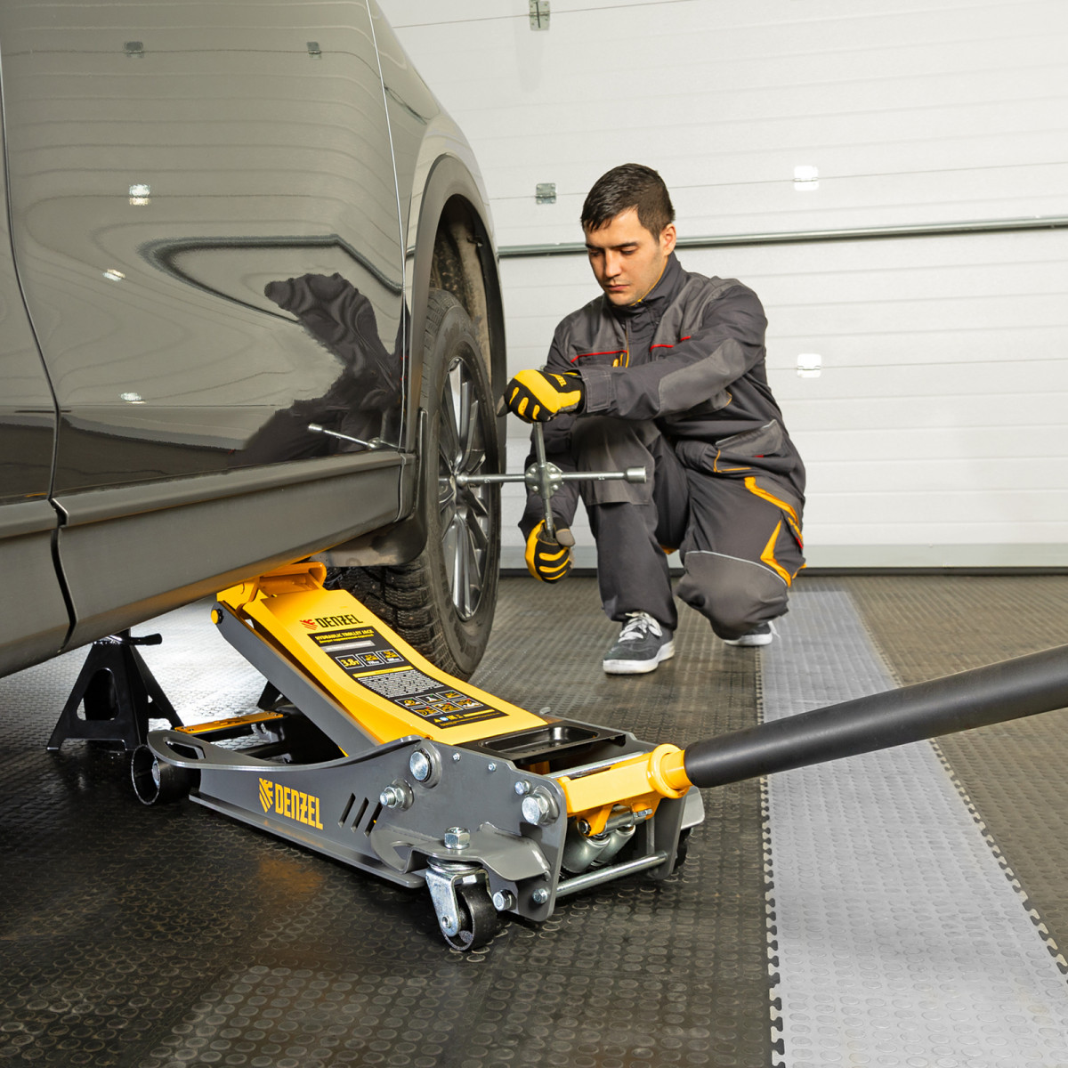 • Аккуратная работа — резиновая опора и прорезиненная рукоятка защищают кузов и днище автомобиля от нежелательных повреждений.
