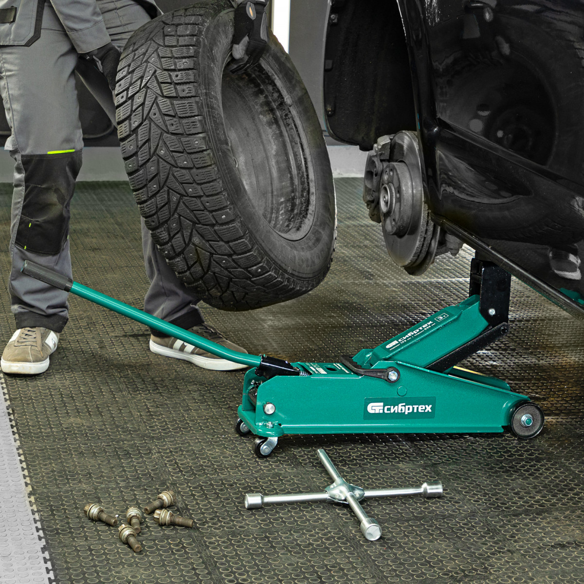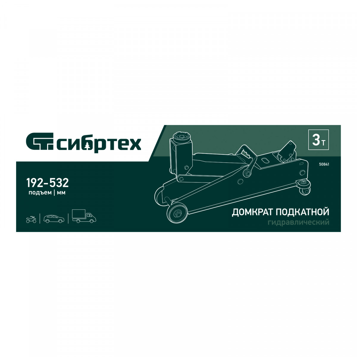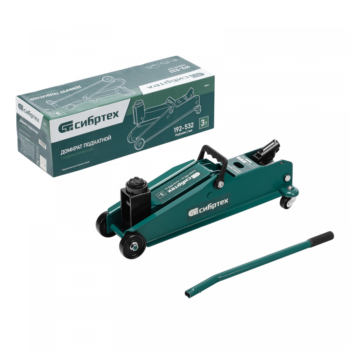 Гидравлический подкатной домкрат Сибртех 50841 с высотой подхвата 192 мм, предназначен для подъема грузов массой до 3 т на высоту до 532 мм, подходит для автомобилей со стандартным клиренсом и SUV. Компактный домкрат подходит для самостоятельного использования автовладельцами.