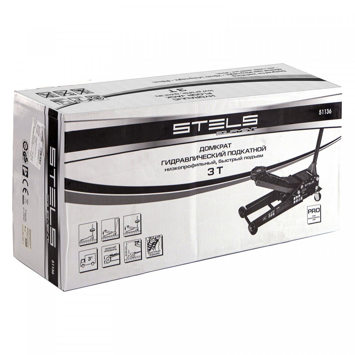 Домкрат гидравлический подкатной, быстрый подъем, 3т Low Profile Quick, 75-515 мм, профессиональный Stels