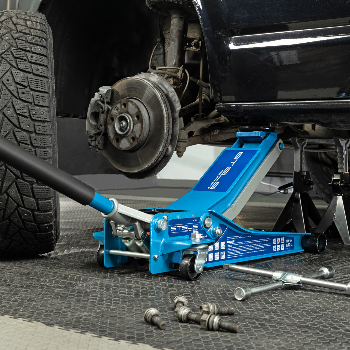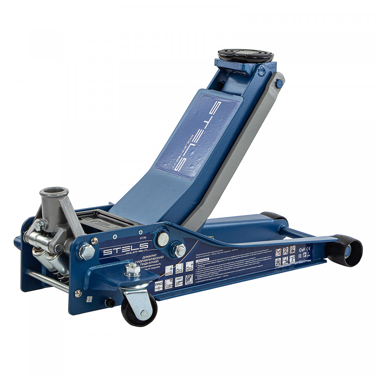 Профессиональный подкатной гидравлический домкрат Stels LOW PROFILE QUICK LIFT 51136 используется для быстрого подъема на высоту 75-515 мм всех типов автомобилей со сверхнизким клиренсом и массой до 3 тонн. Благодаря системе QUICK LIFT для достижения предельной высоты достаточно 12 качков рукоятки. Домкрат подходит для использования на станциях техобслуживания и шиномонтажа.